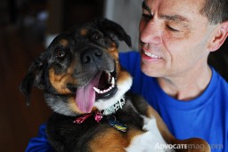Lucy is bossy — she gets up in the middle of the night barking, almost daily, at a possum that hangs out on the porch. And she will stand and stare at her leash until someone takes her out.