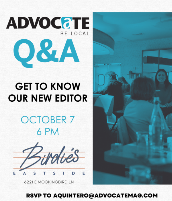 This event is meant to provide a platform for open dialogue between Advocate and our readership. This is especially important to me, Aysia Lane, as I get settled into my new role as the Lakewood/East Dallas editor.