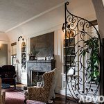 The home’s living room contains the most Hutsell-esque details. The architect was known for including lively murals and frescoes in homes, and he employed Potter Art Metal Studios to create metalwork details.