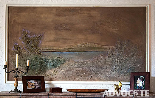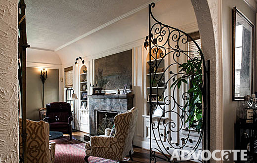 Original murals in the Smith home were covered with white paint years ago. But the couple is restoring a fresco over their fireplace with the help of their next-door neighbor, artist Brian Boyd, whose home was Hutsell’s personal residence.