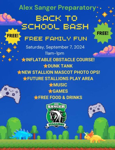 “We are excited to invite students, their families and the community to our Back to School Bash and look forward to another year of learning, growth, and community at Alex Sanger Preparatory,” Principal Alex Merritt said.