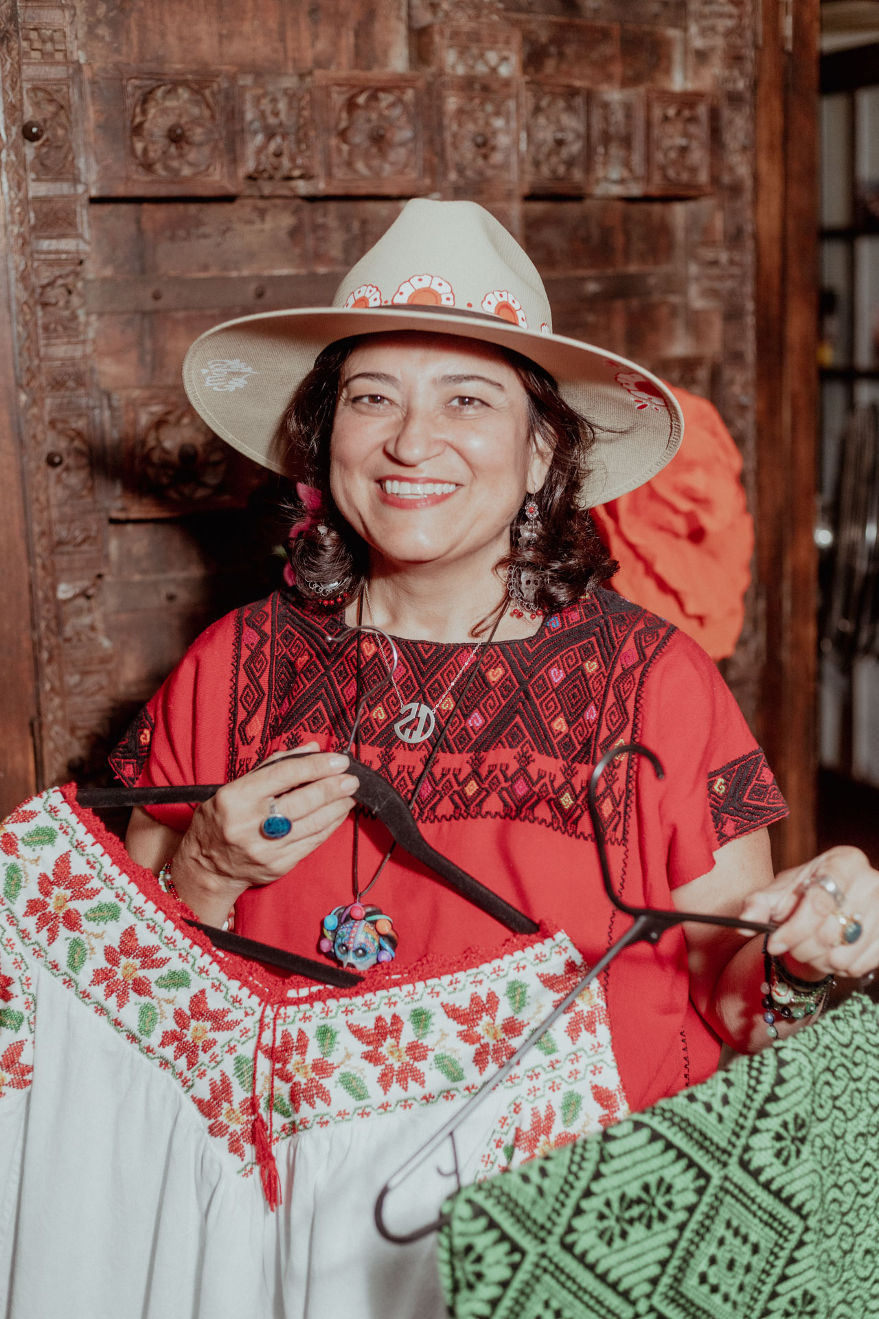 Wanting to make more elaborate hats, Darwish employed artisans to paint them with designs inspired by Mexican art styles, such as Talavera and Tenango.