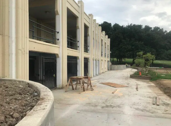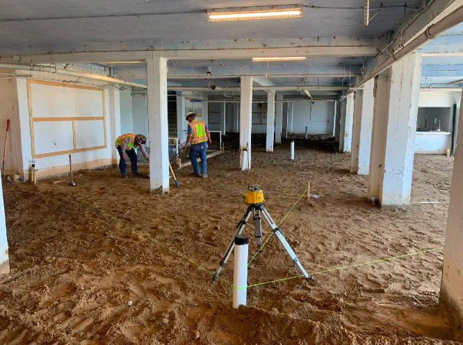 Workers have leveled and cemented a new walkway from the parking lot to the back of the building at lake level to comply with the Americans with Disabilities Act. They have also redesigned the bathrooms to ensure that people with disabilities have appropriate space.