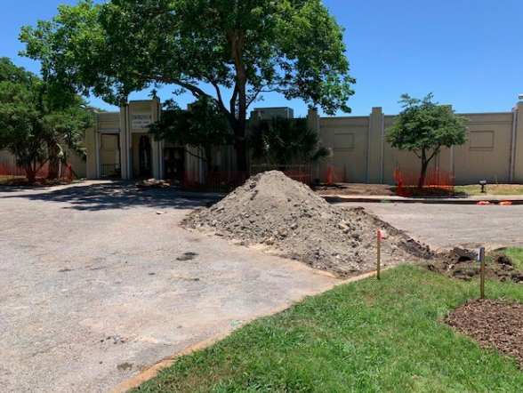 Landscapers have leveled the area and improved the drainage to prevent flooding to make the outdoor theater more usable.