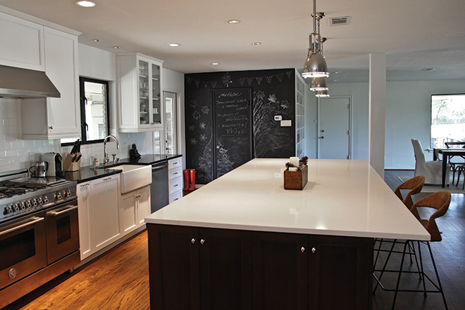 They knew they wanted to knock out the wall between the kitchen and the living room, to open up the space, and Vracar knew she wanted a combination of dark and light material. Other than that, she really hadn’t considered the layout.