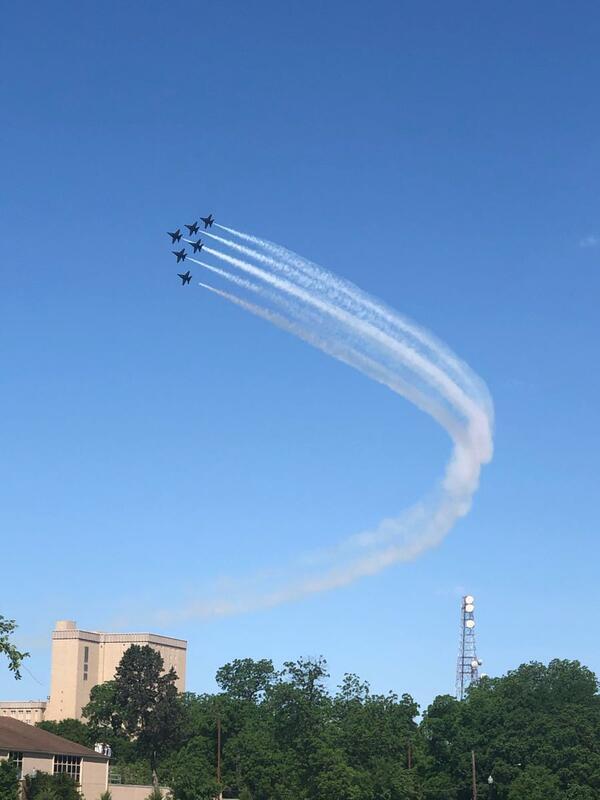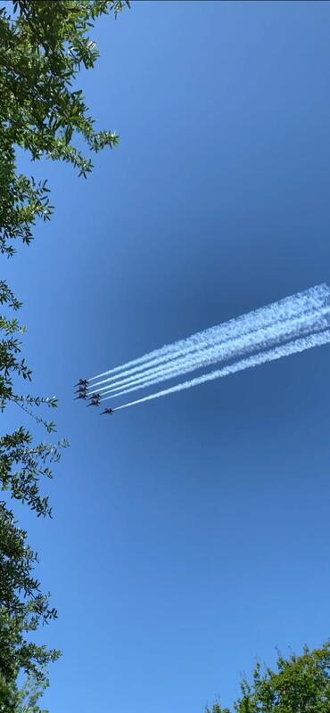 The Navy’s elite maneuver team, the Blue Angels, flew over our neighborhood Wednesday in a salute to health care workers and first responders battling the coronavirus.