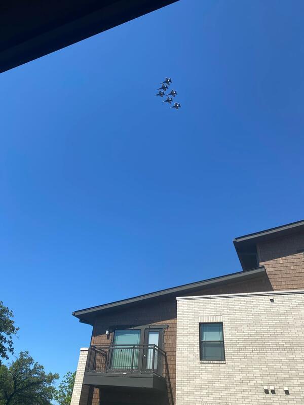 Neighbors stepped out of their homes to catch a glimpse of the team performing its 35-minute flight over the Dallas-Fort Worth area.