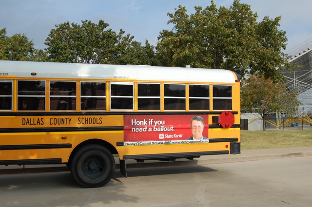 For almost a year, Dallas County school districts, including Dallas ISD, have participated in a program run by Alpha Media that offers school bus advertising to local and national businesses. Here’s how it works: Companies purchase one ad per bus, which is placed above the windows on either side of the bus or below the windows on the driver’s side, and school districts receive 66 percent of revenue from ad sales.
