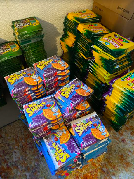 Other donations include paint sticks that dry within seconds, watercolor palettes, paint brushes and Model Magic for sculpting.