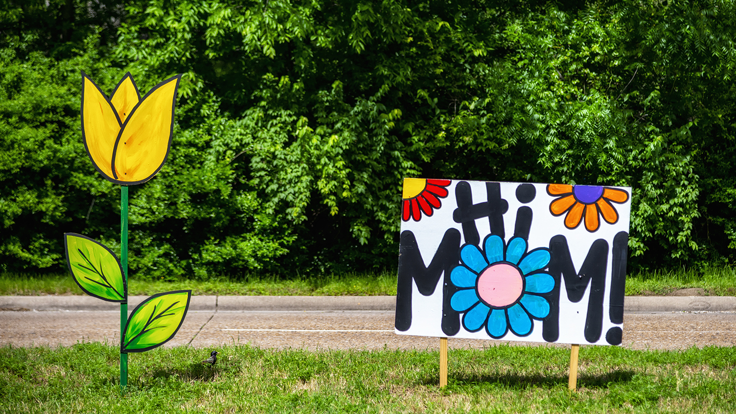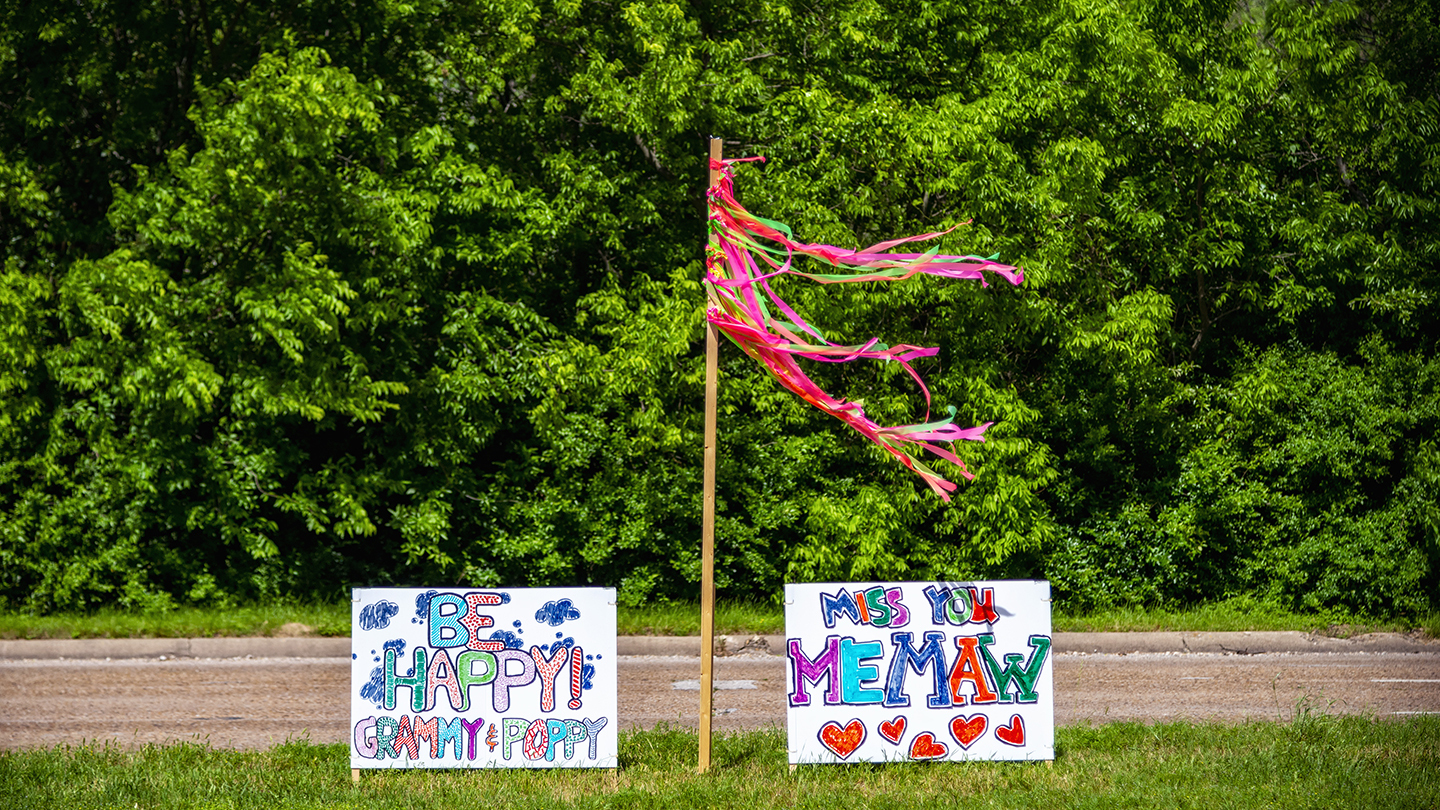 Residents missing their families will see signs that read, “Be happy grammy and poppy” or “Hi mom” and “Hi dad.”