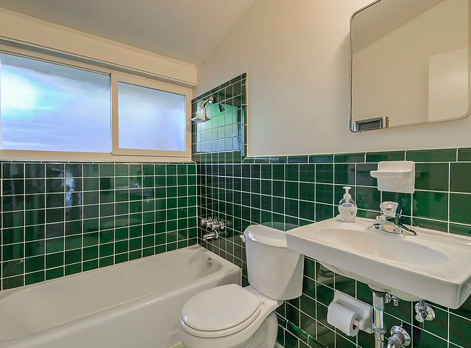 There is a courtyard and several floor-to-ceiling windows, which are typical of May’s work. The architect is best known for creating the California Ranch house, built to erase the line between indoors and outdoors.
