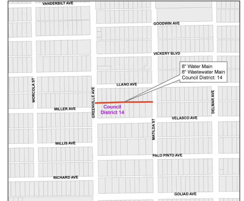 The City of Dallas Water Utilities announced that, starting this week, portions of the alley between Llano Avenue and Velasco Avenue from Greenville Avenue and Matilda Street will be closed.