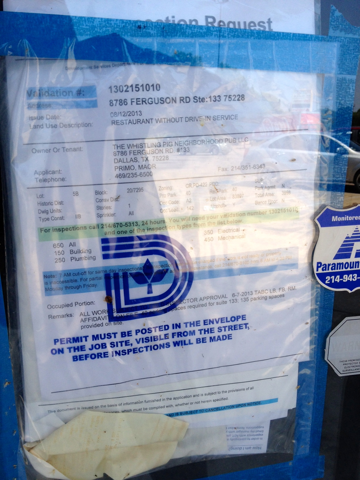 The sign on the front door says it’s going to be the “Whistling Pig Neighborhood Pub,” and the manager of the Cock and Bull on Gaston confirmed that the owner of Cock and Bull is behind the project, but he said he couldn’t tell us anything more than that at this time. He did add, however, that “that bar is a work in progress, so it’s gunna be a while.”