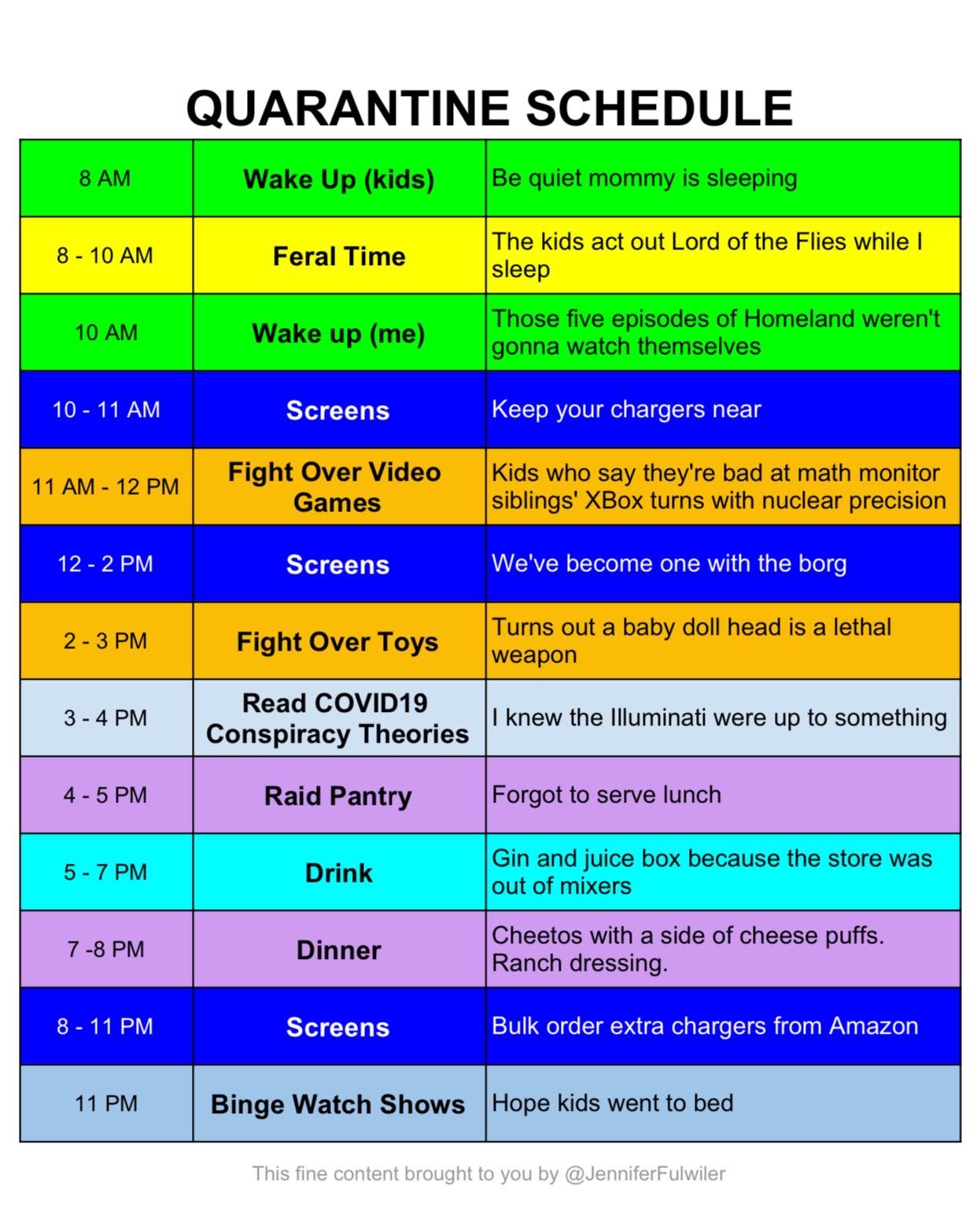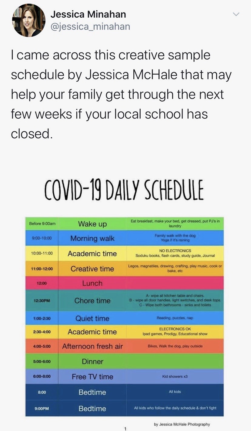 Here is the schedule Gagel made for her own family.