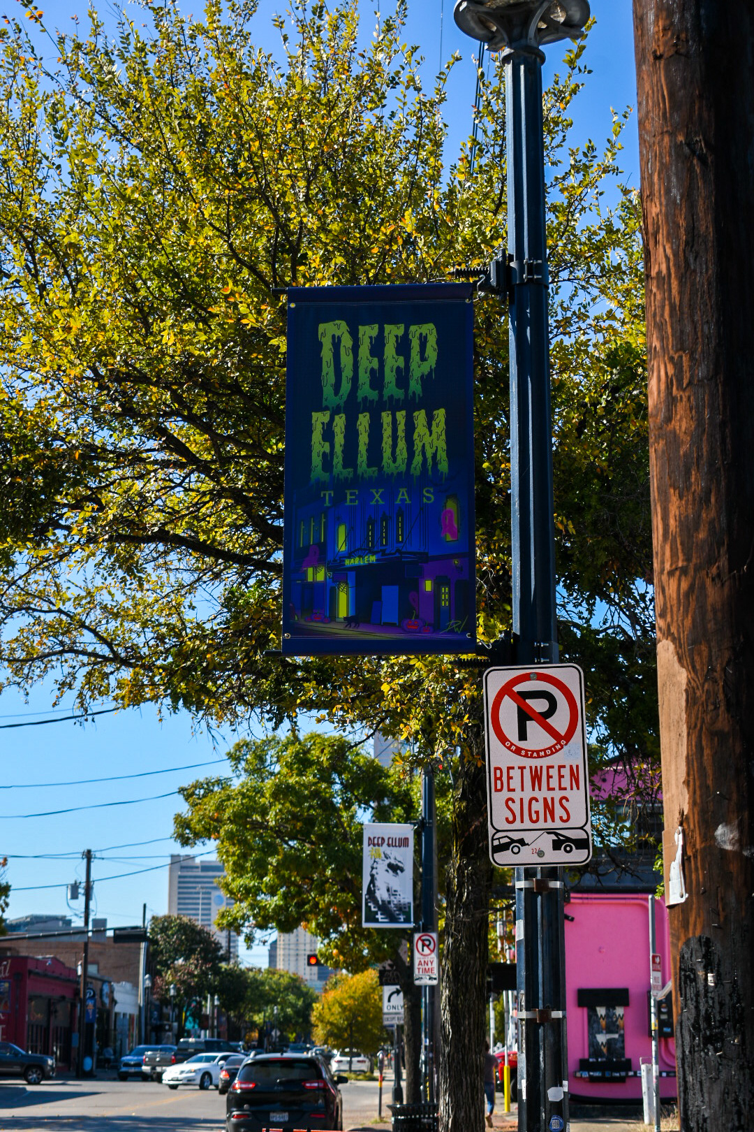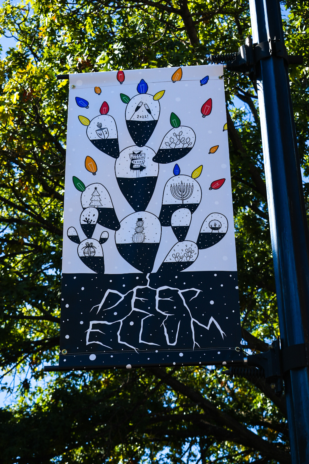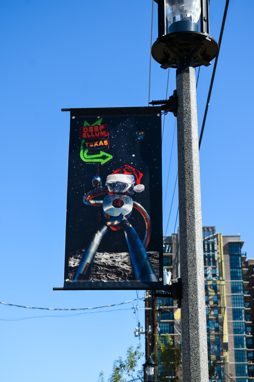In October, the Deep Ellum Foundation installed a series of banners made by local artists to celebrate the holidays.