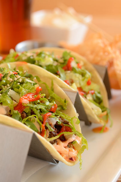 Similar to the carrots that often accompany Buffalo wings, cubed daikon radish comes with Bonchon wings, and it sufficiently cools the palate if you choose to go the hot-and-spicy route. Or you can find refreshment while sipping a pint from Bonchon’s horseshoe-shaped bar boasting 18 draft beers, the majority of which are craft beers made in North Texas.
