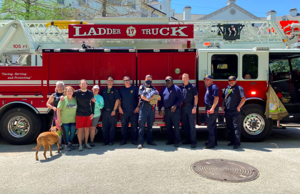 The State Farm workers who found the dog and called 911 showed their appreciation Monday by bringing food to the fire station and treats for Grace.