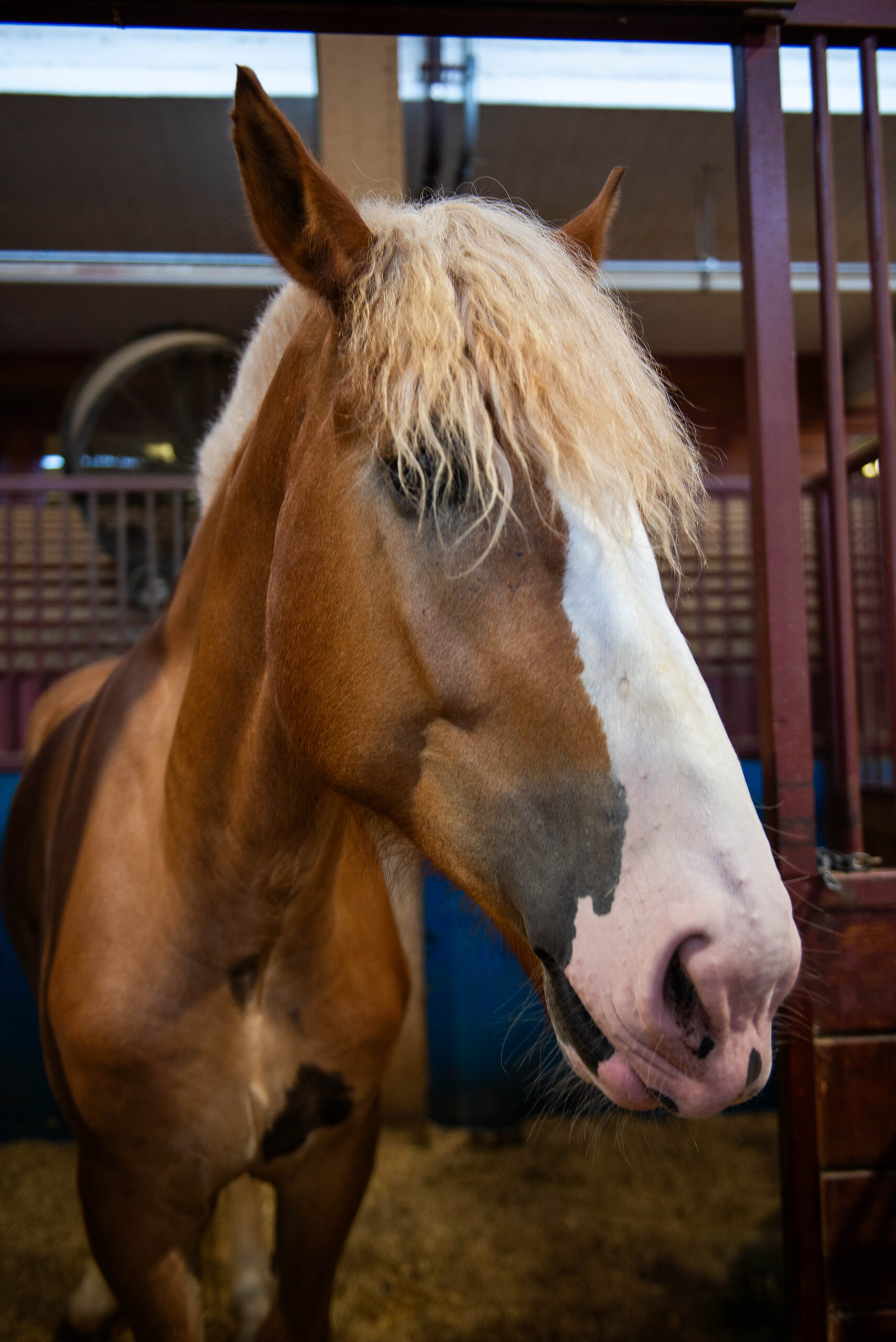 Giant horses fill a stable in Fair Park. Past rustic maroon fences and pillars, 10 of them line up in the round pen with their assigned riders on a warm August day. A trainer stands in front of the horses and shouts commands.