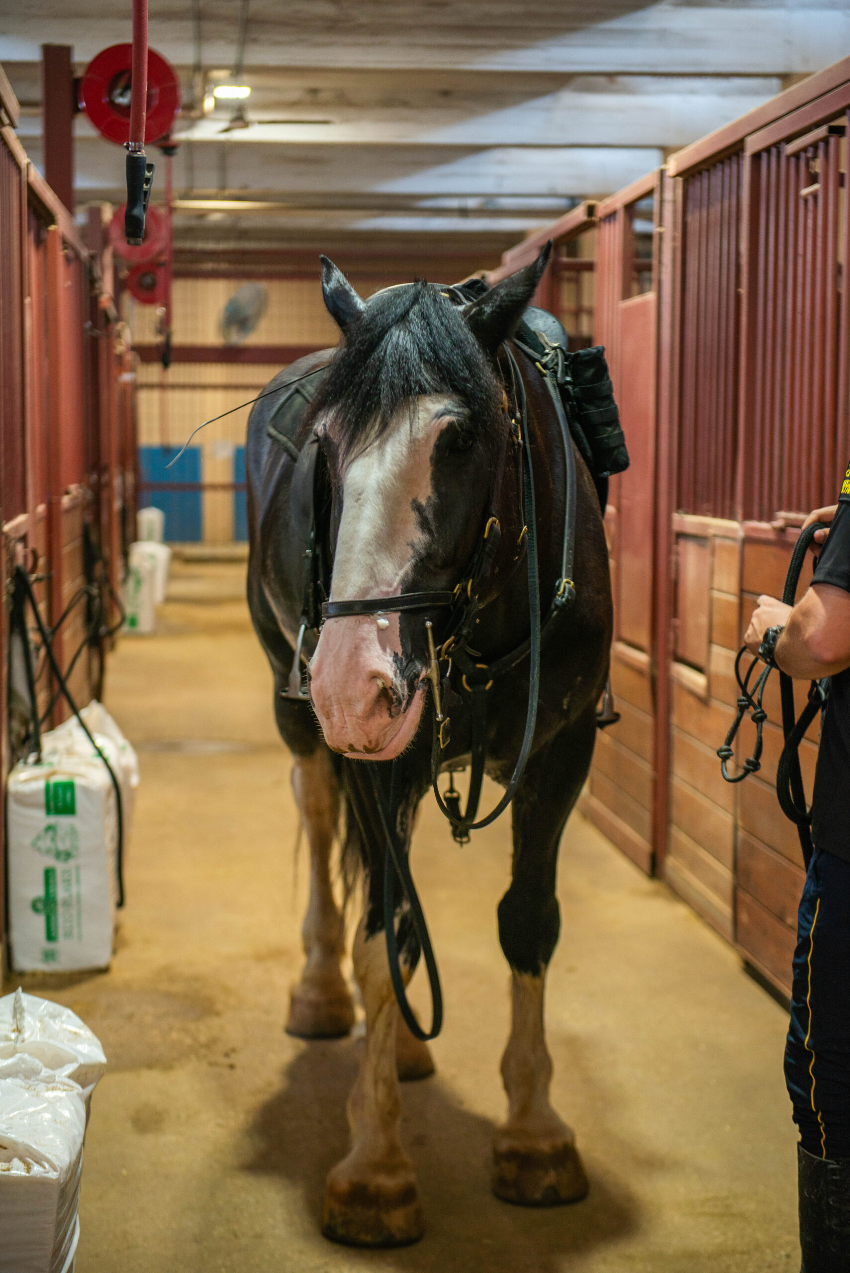 Outside the stable, the unit patrols events such as riots, protests, parades and community events. Officers also perform standard police duties while riding the horses.