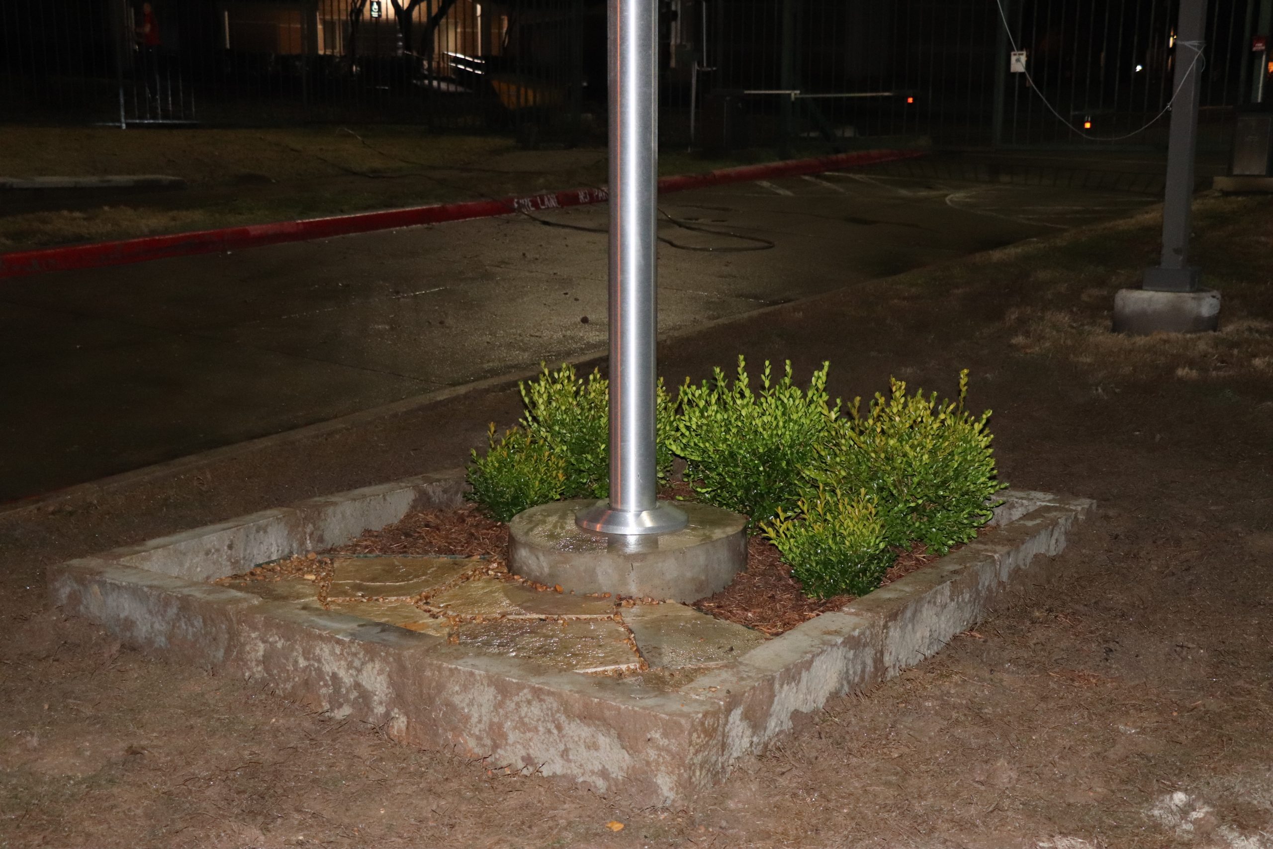 Fox raised more than $2,600 from 40 donors. The project involved about 30 workers, including fellow Boy Scouts, leaders and adults working 277 hours from October to March. Volunteers dug the hole, poured cement, worked with an electrician for lighting and installed the 25-foot, 200-pound flagpole. They also built a surrounding flagstone patio with stone edging, bushes and floodlights.