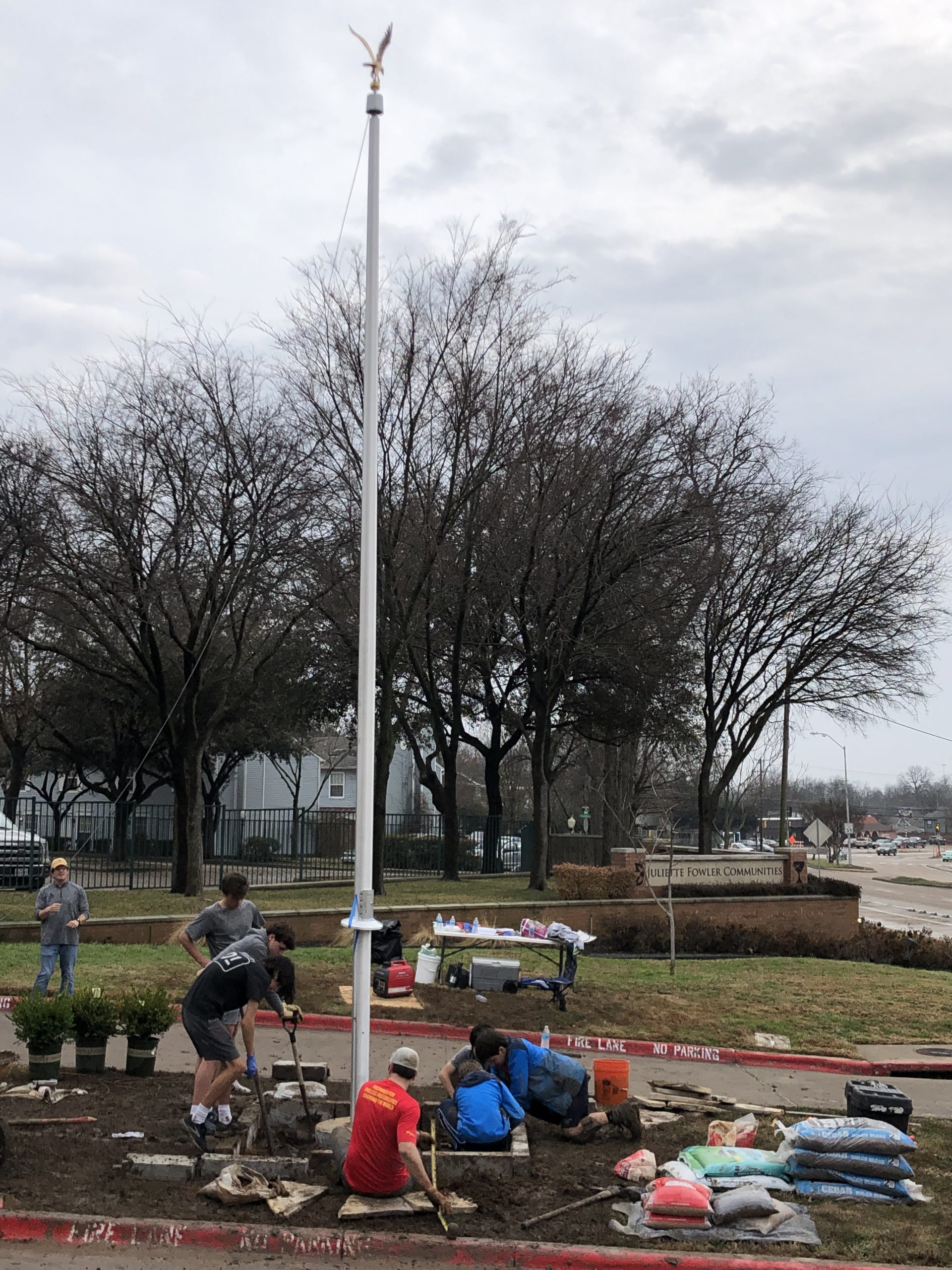 Roman Fox was struggling to find a location that would work with him on his Eagle Scout project because of COVID-19 restrictions. As a member of St. Thomas Aquinas Catholic Church, he was familiar with Juliette Fowler and toured the facility, where he learned of the need for a flagpole at the front entrance.