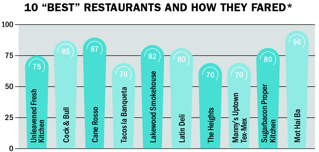 In some big cities, such as New York and Boston, restaurants’ food inspection grades are posted in windows. In Dallas, diners have to dig a bit deeper for the details of an establishment’s latest food inspection scores. If this snapshot isn’t enough, dive into the city’s database, where you can search by restaurant name or address, at dallascityhall.com/departments/codecompliance/restaurantandbar.
