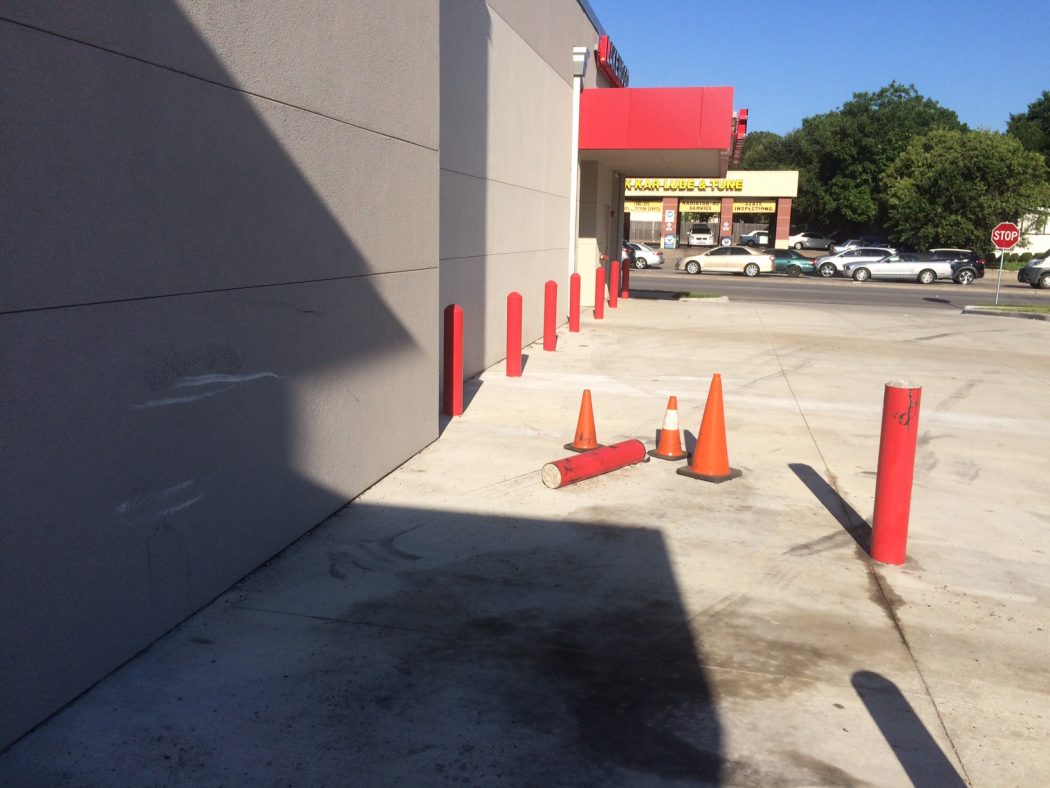 The truck took out a small tree and this protective post before coming to rest against the wall of the ER.