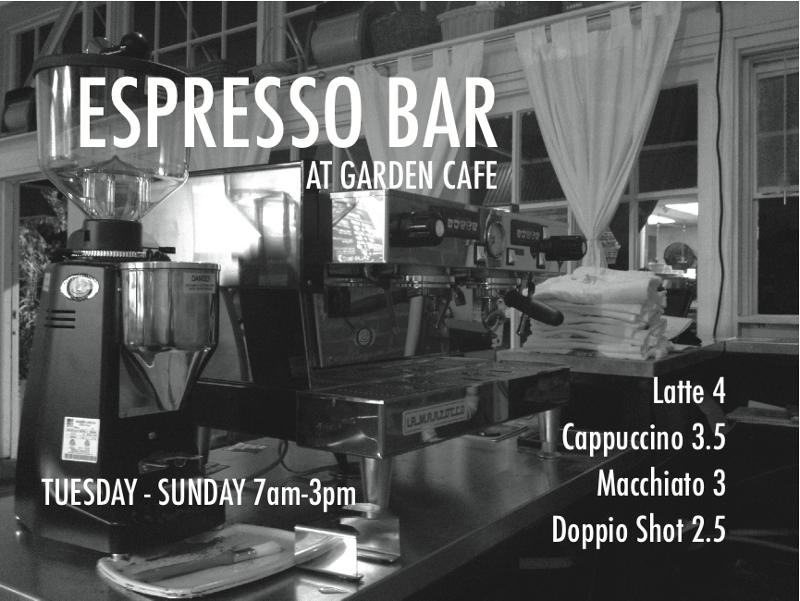 Garden Cafe announced it is extending its hours of operation. Starting May 28, the espresso bar at Garden Cafe will be open 7 a.m. to 3 p.m. Tuesday through Sunday.