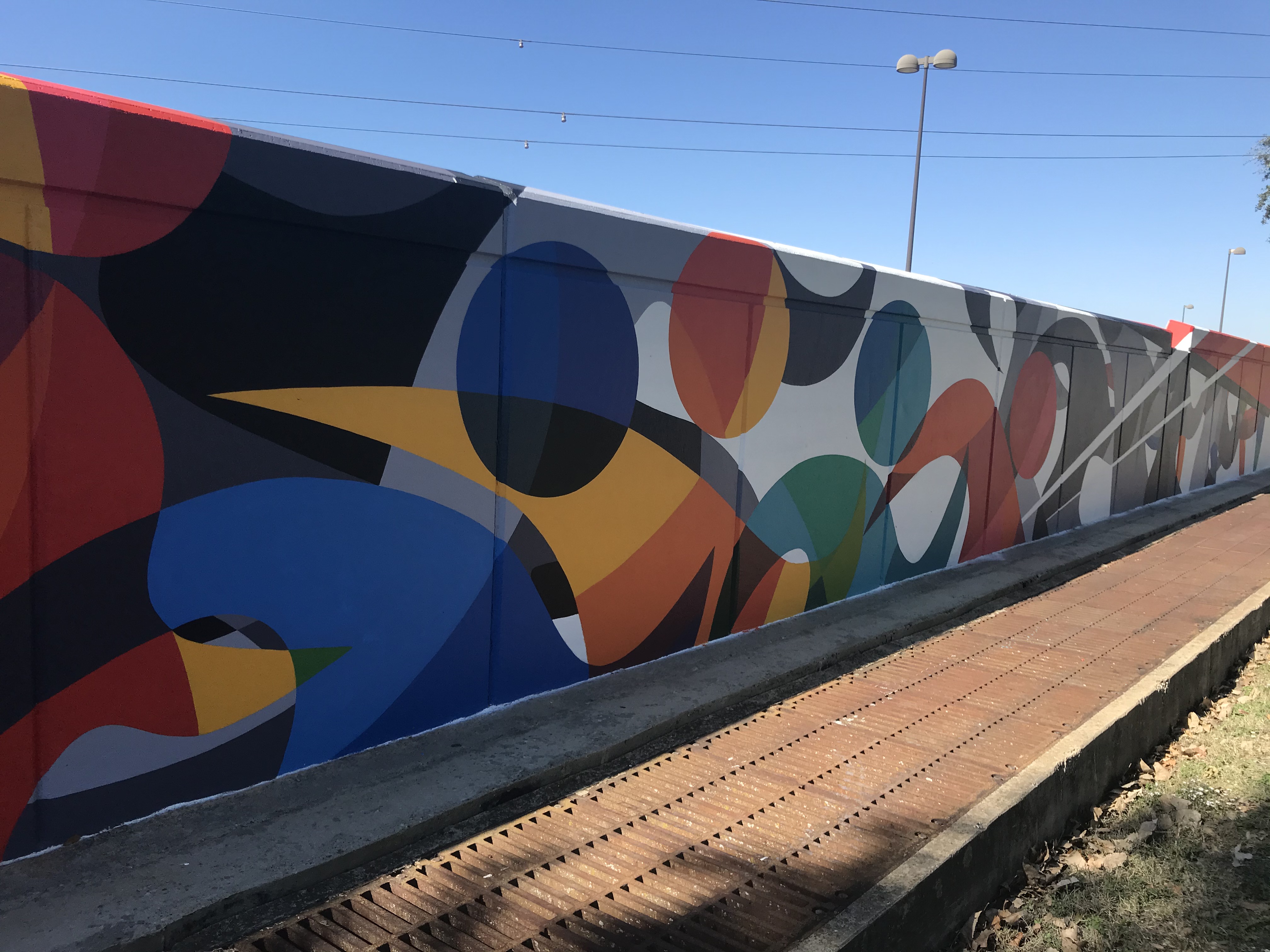 It’s hard to miss the colorful new mural at Glencoe Park. The 650-foot piece catches the eye long before neighbors reach the park with its bold patterns and geometric shapes.