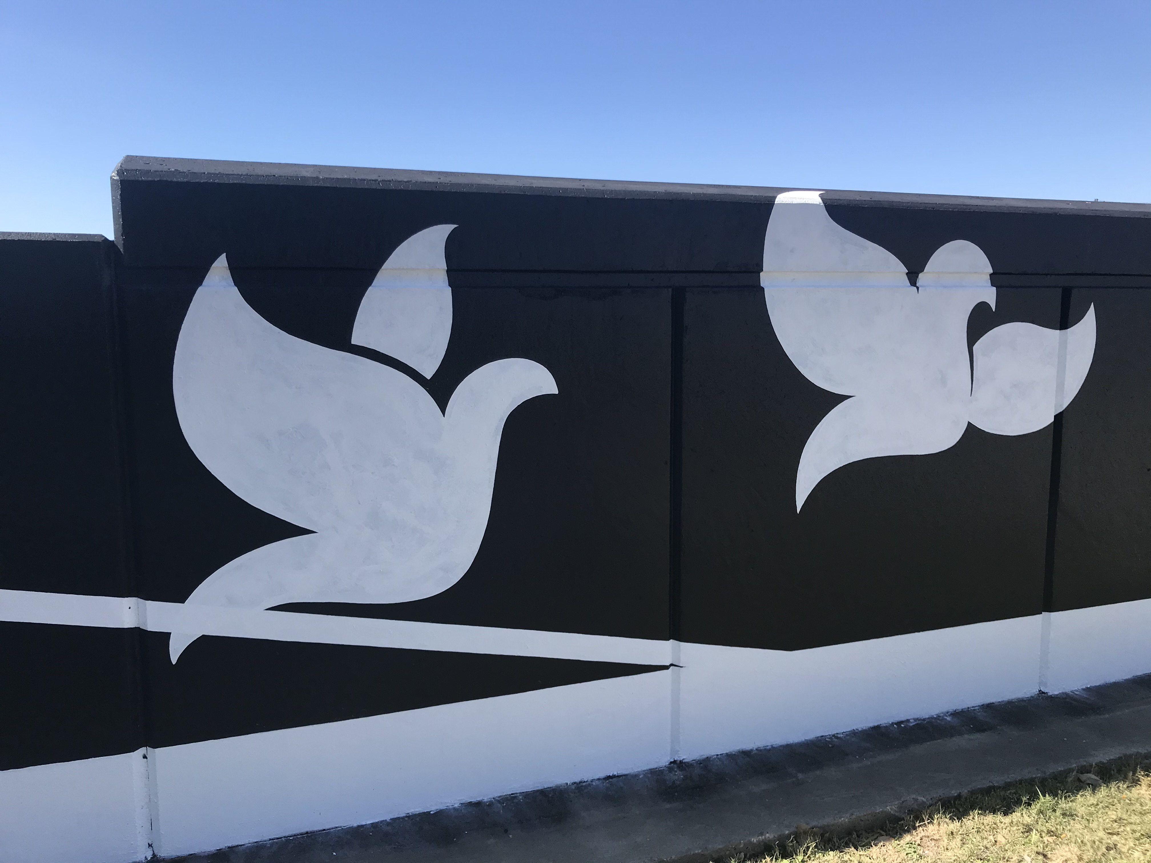 The artwork, commissioned by the University Crossing Public Improvement District, will likely be completed this week. Neighbors will see images, such as a mockingbird and a mustang, that reflect the district. Yet many questions remain.