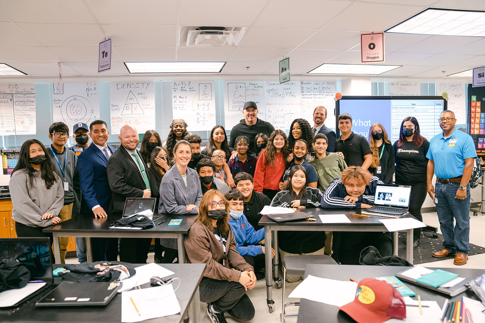 - A class at Robert T. Hill Middle School poses for a photo with the athletes. Photography by Klose Up Photography.