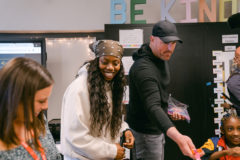 Arike Ogunbowale and Jason Witten bring school supplies to Robert T. Hill Middle School. Photography by Klose Up Photography.