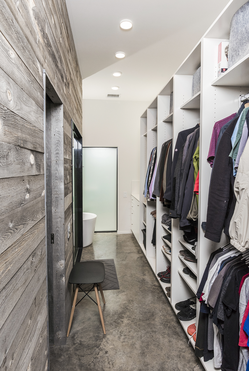The home unites the Linders’ affinity for reclaimed materials, their modern yet warm aesthetic and the unique needs of their family. The reclaimed wood was once used as a Wyoming snow fence, and the rust on the roof and siding is meant to protect the metal’s structure. The home is a nod to early settlers of the blackland prairie region where Dallas sits today.