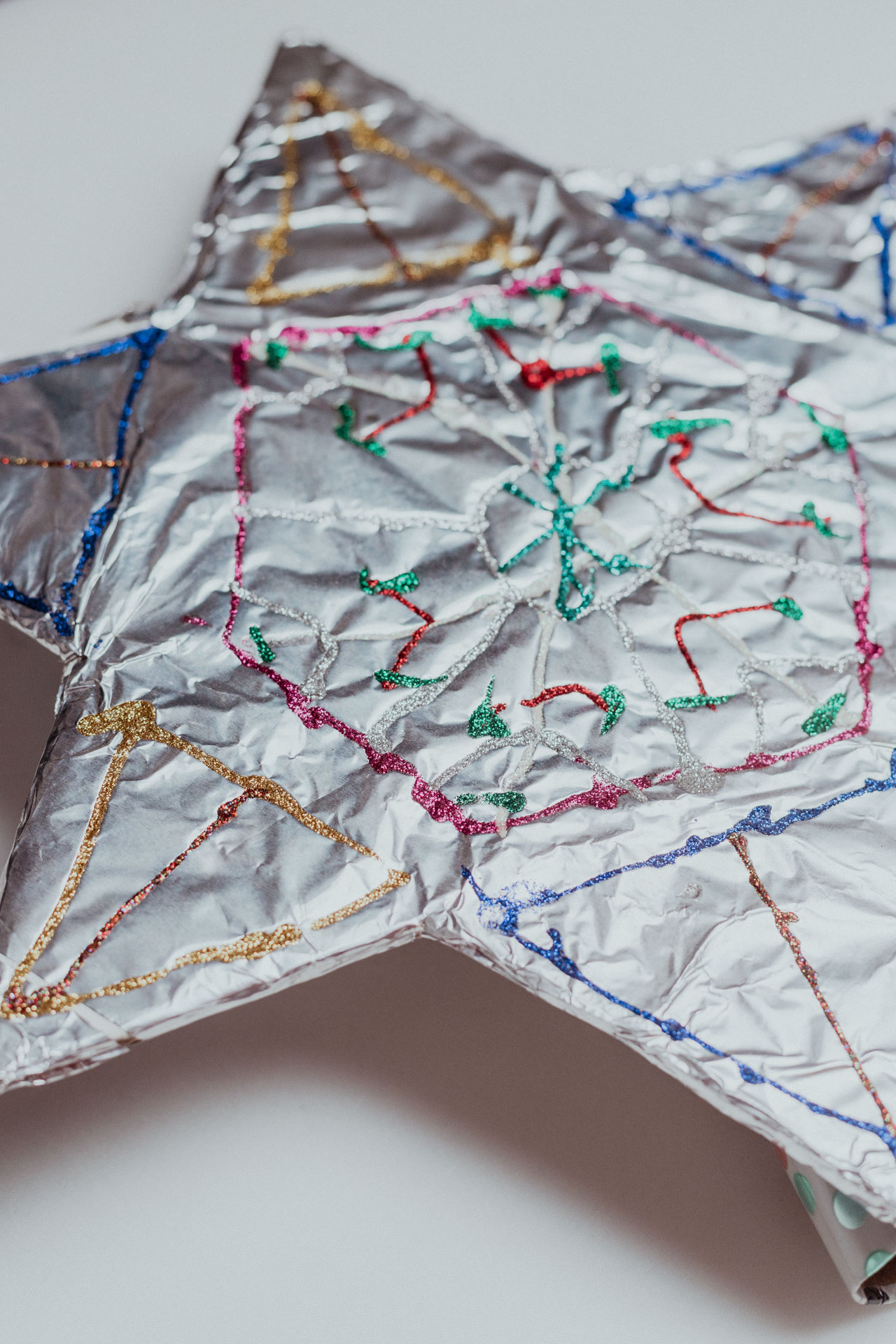 Left: This highly desired gift in Elida Willis’ white elephant exchange is known as the “Posadas Venado.” Right: Handmade Star of David with aluminum foil tops Cathrine Tuck and Matthew Fott’s interfaith holiday tree. Photography by Jessica Turner.