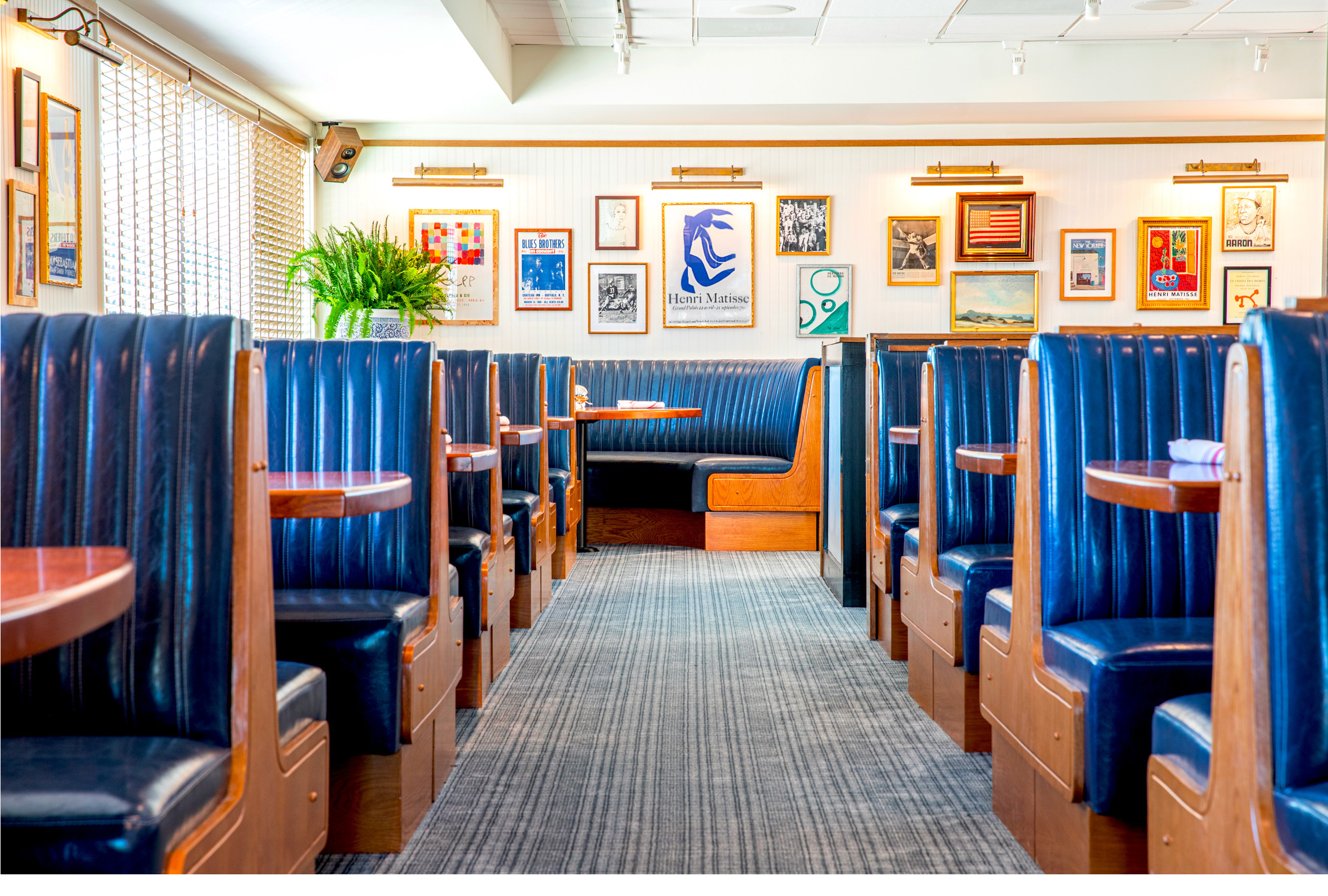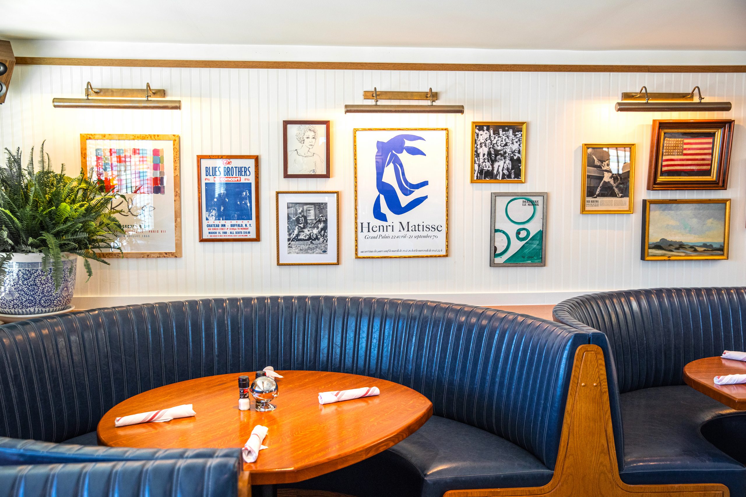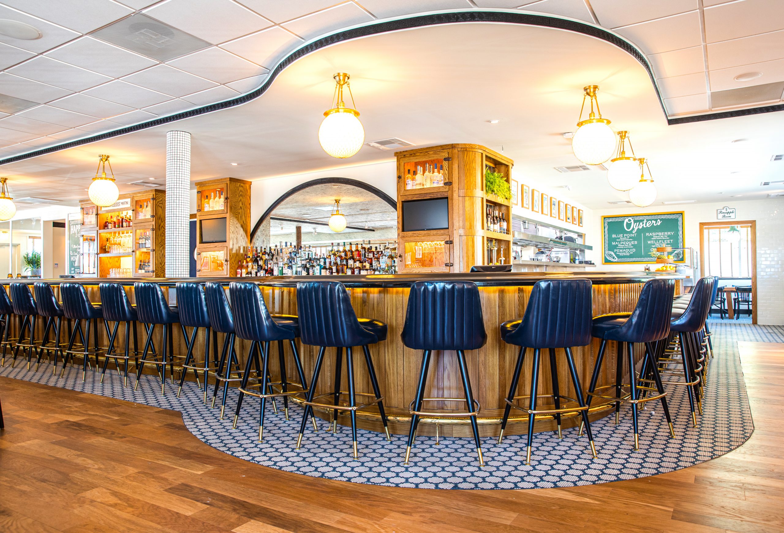 The interior of the former IHOP has been transformed into a sophisticated space reminiscent of the West Village in New York City. The property features more than 70 pieces of antique artwork and vintage sports memorabilia. Look for the brand’s pineapple motif hidden throughout the restaurant.