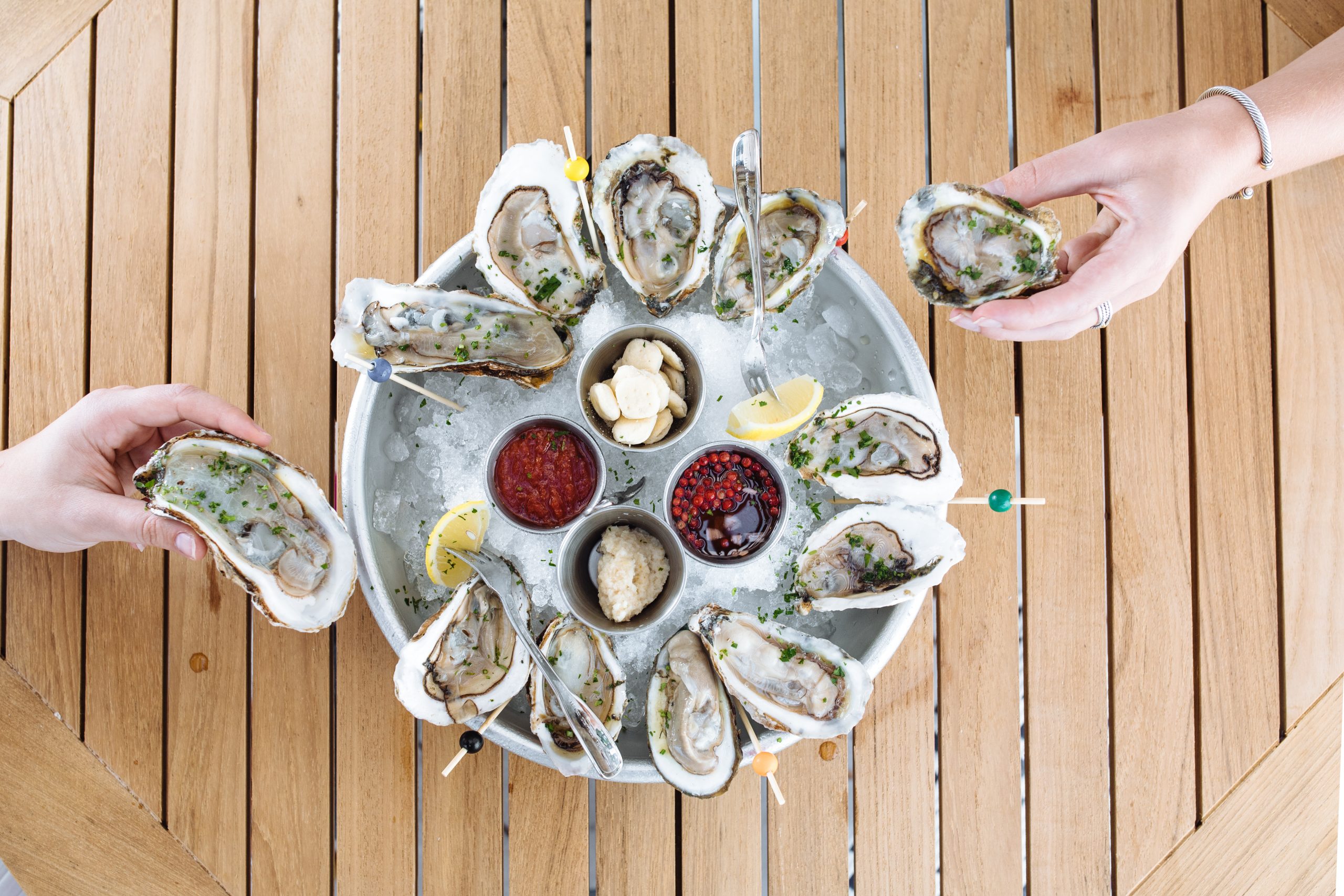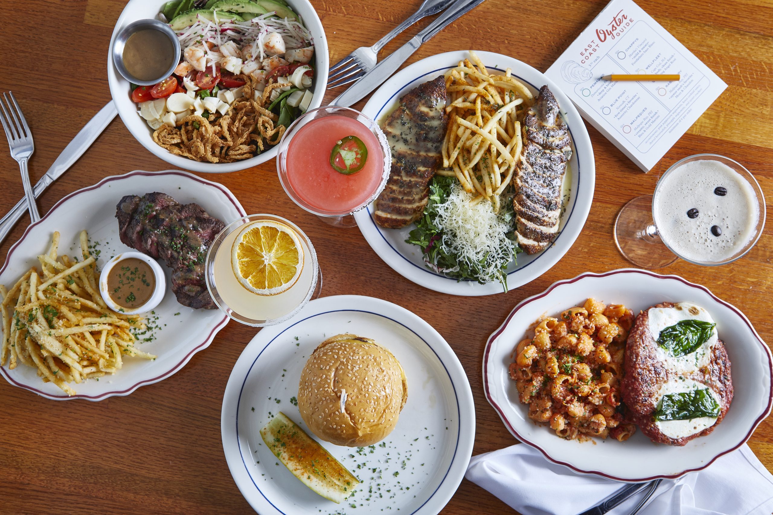 Hudson House offers all-American fare for lunch and dinner, alongside a raw bar specializing in oysters that are shipped from the East Coast daily. Popular dishes include the avocado dip, a starter made with whipped avocado, green onion, herbs and ranch chips; the cheeseburger with American cheese, pickles and Hudson sauce; and the Royal Seafood Tower with oysters, shrimp cocktail, tuna tartare, cracked king crab and a 2-pound lobster.