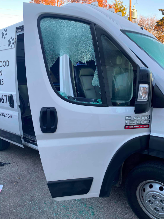 Burglars caused about $8,000 in damage Friday when they broke into three Lakewood Mobile Pet Grooming vans in East Dallas, the owner said.