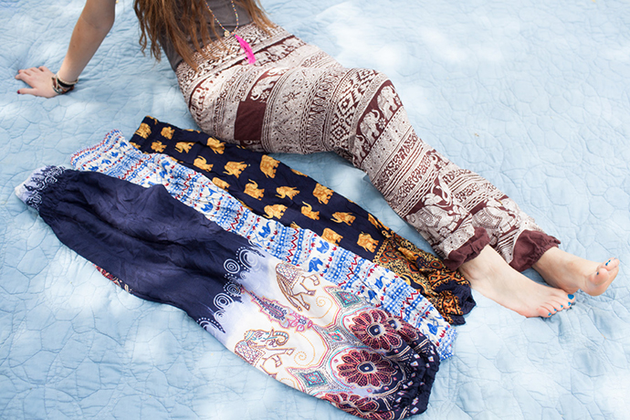 When she returned home, she brought back several pairs of Thai harem pants decorated with various elephant patterns. Her friends saw them and begged her for a pair, but she didn’t have enough for everyone. She researched how to buy more and realized it was cheaper to buy them in bulk.