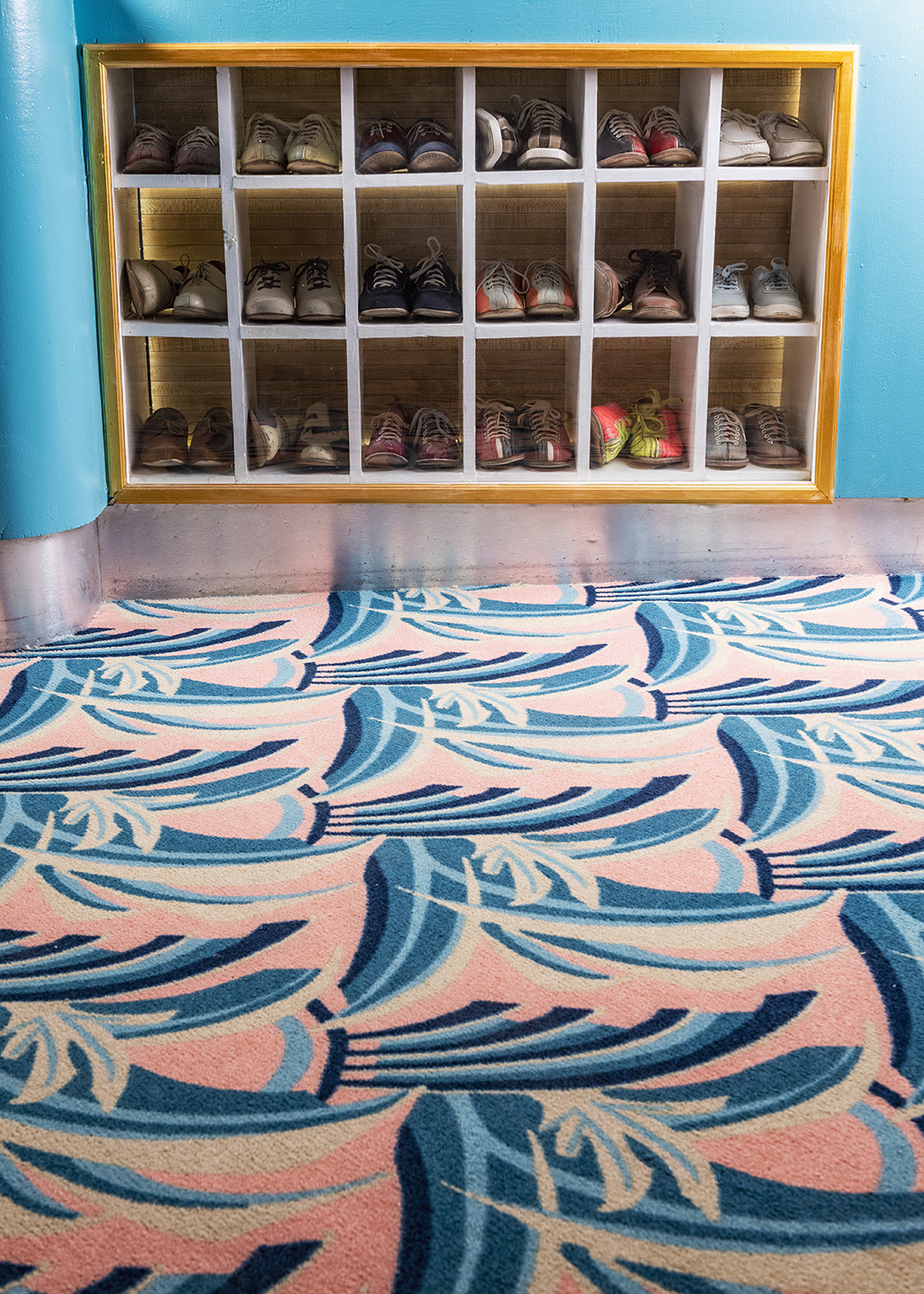 When neighbors walk into the new-look theater, they’ll be greeted by a bellhop and escorted to a familiar art deco candy counter where they will check in and rent their shoes. The lobby remains recognizable with its original doors, murals and patterned carpet, but as patrons continue into the former auditorium, they may be surprised by the changes.