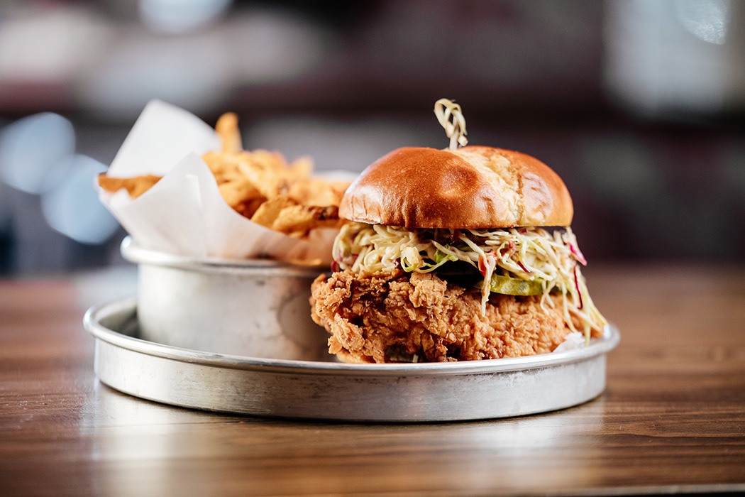 Neipp prefers the jalapeño burger, but the fan favorite is the chicken sandwich. The artichoke and brussel sprouts are good for the health conscious, but the garlic Parmesan fries are where it’s at.