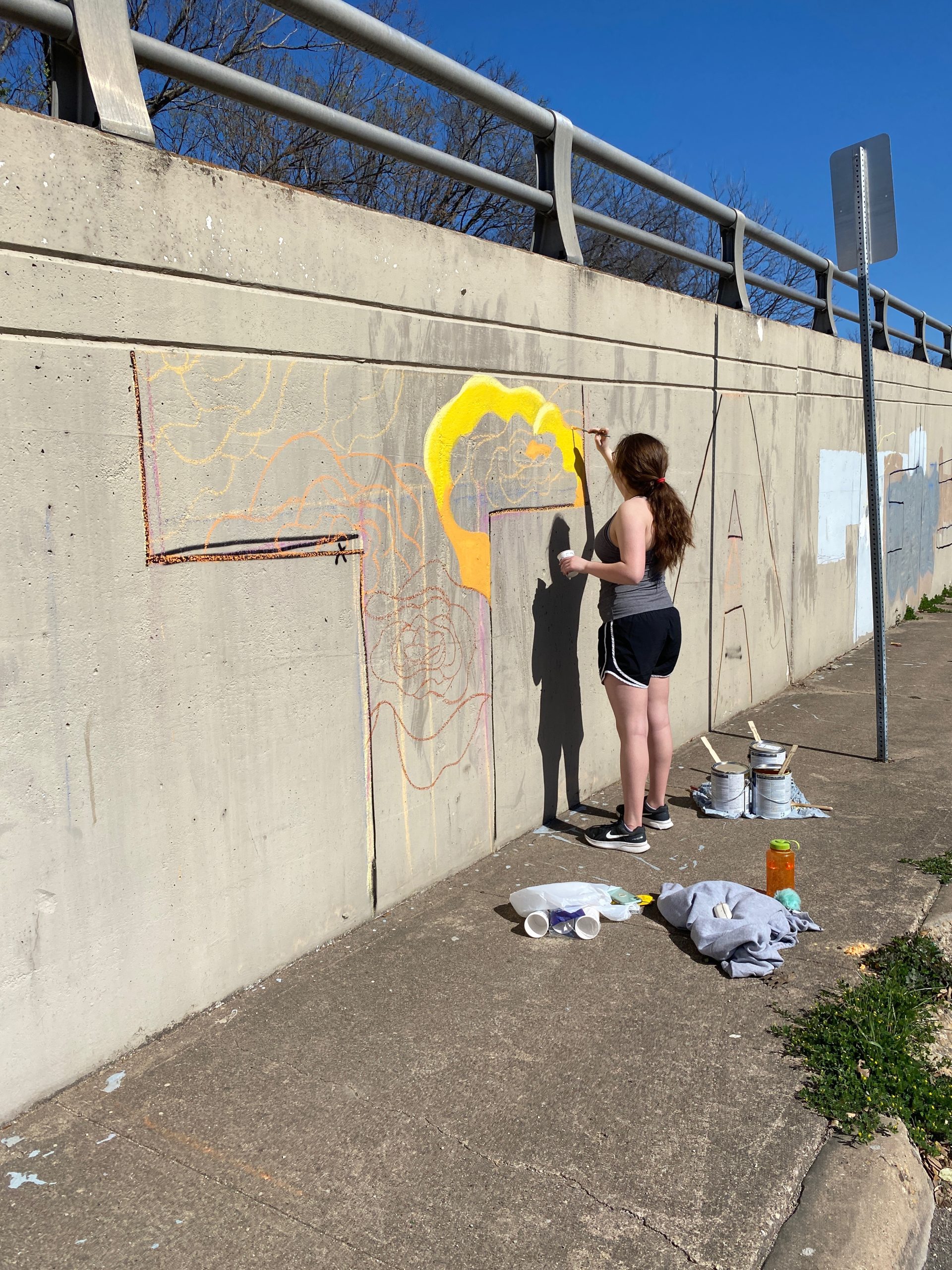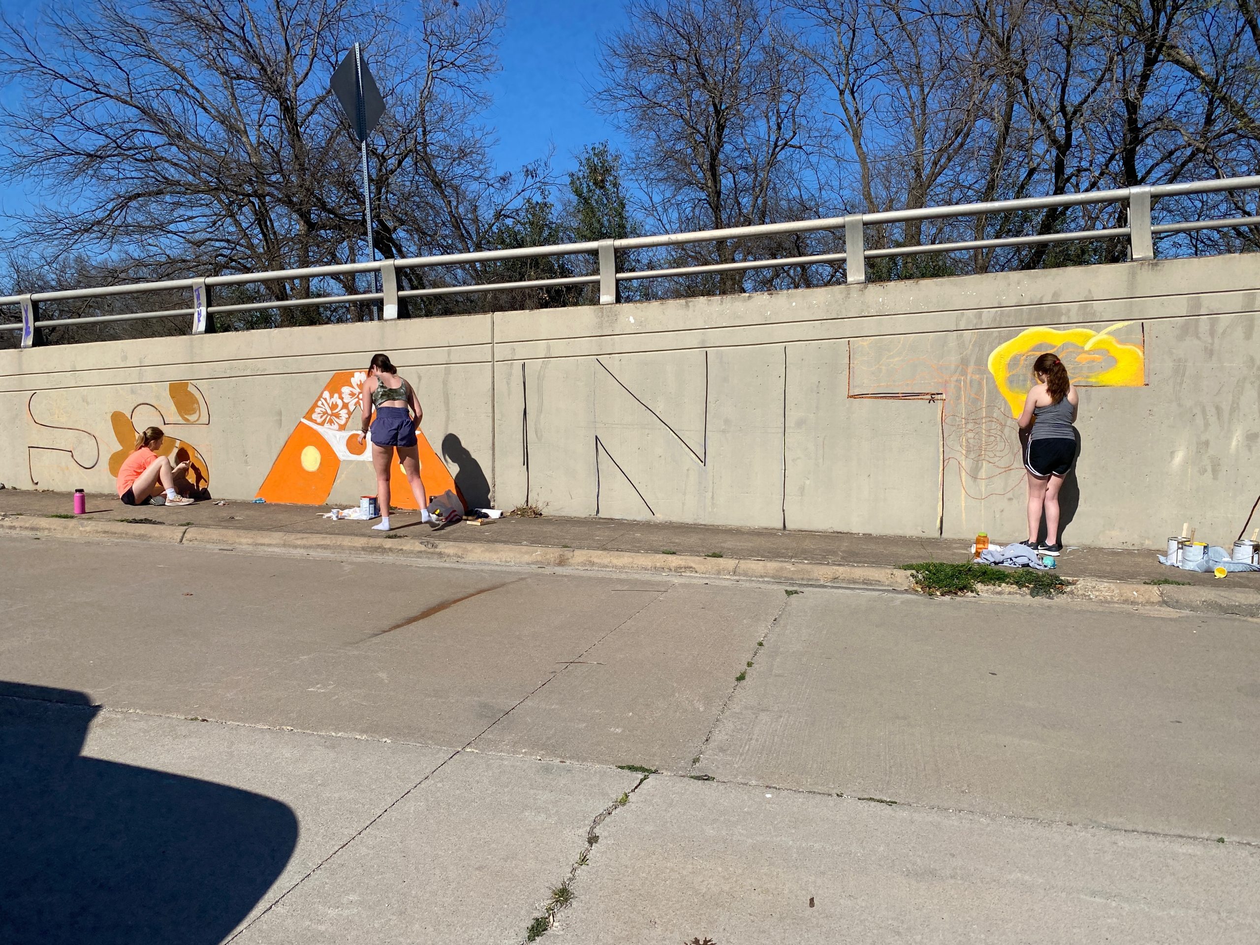 Woodrow Wilson students started painting the bridge near Brookside Drive and the Santa Fe Trail.