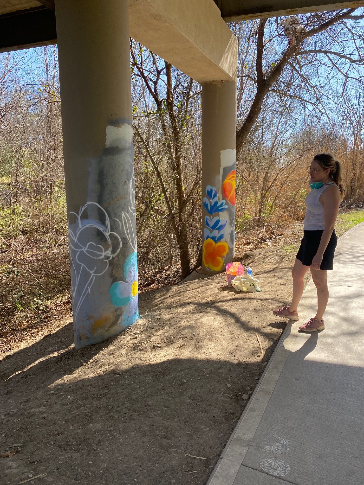 Students paint the bridge near Brookside Drive and Santa Fe Trail on March 20, 2022. Photo by Amanda Domaschk.