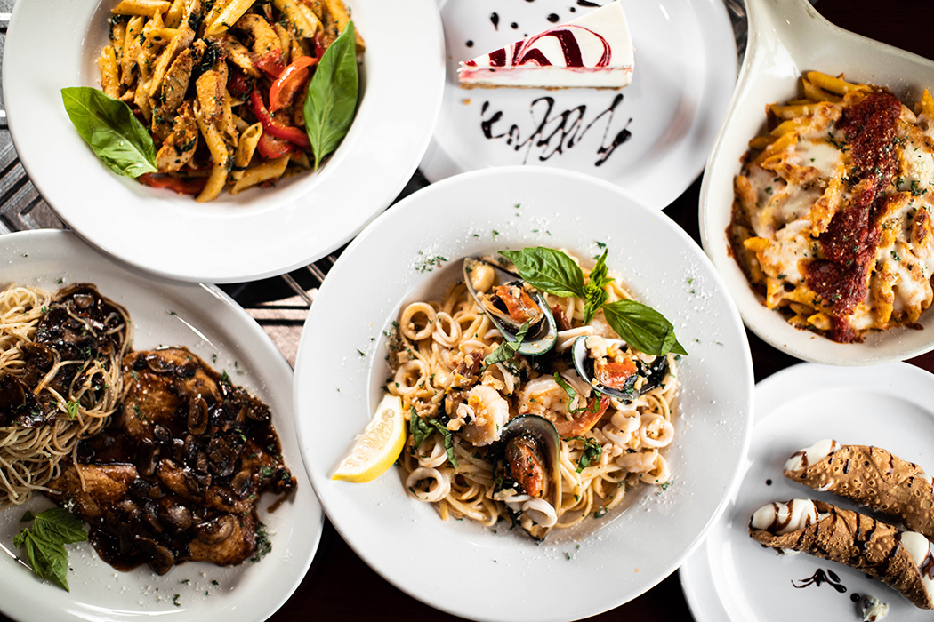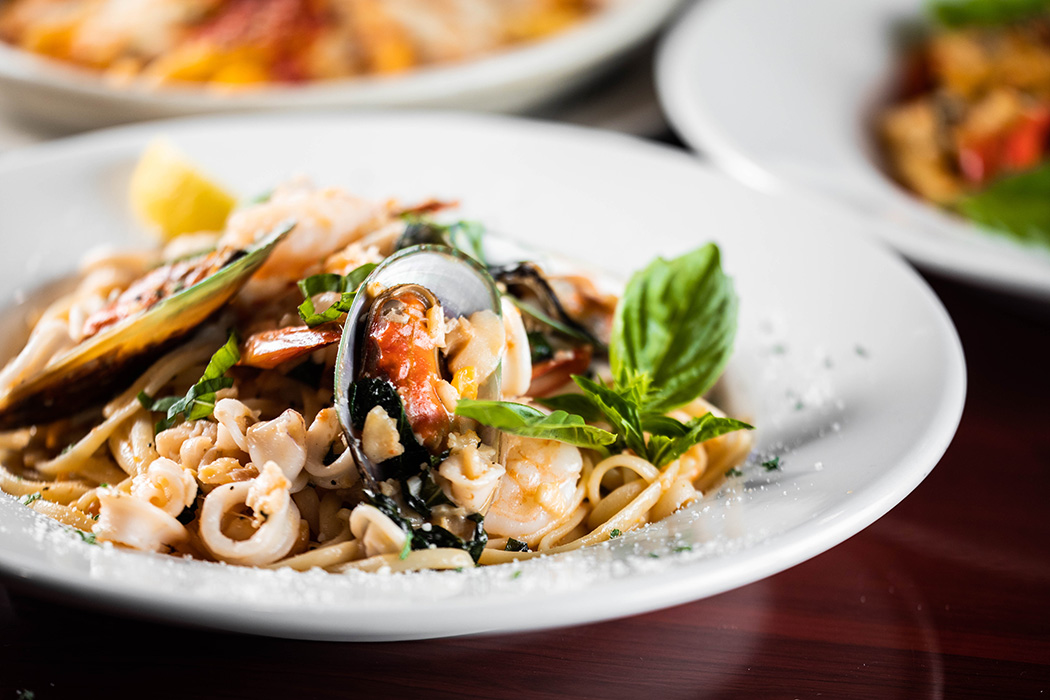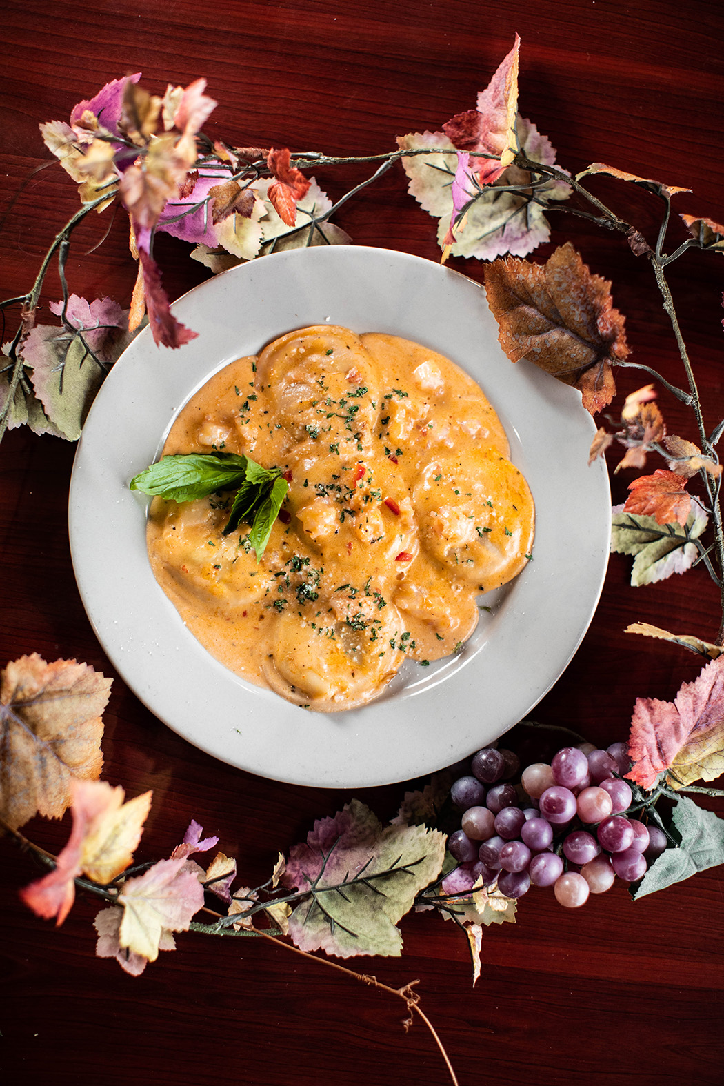 Seafood lovers might enjoy the seafood combo — linguini with mussels, calamari, shrimp, clams and a white wine garlic sauce. Lobster ravioli with brandy cream sauce is also a favorite.