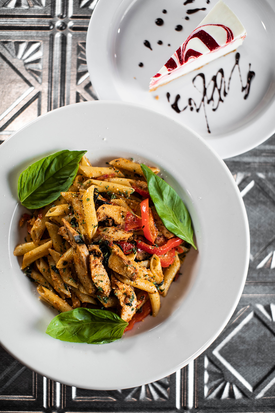 Popular dishes include the chicken Marsala and the penne rigate with grilled chicken, fresh basil, garlic, olive oil, red bell pepper and a touch of tomato sauce.