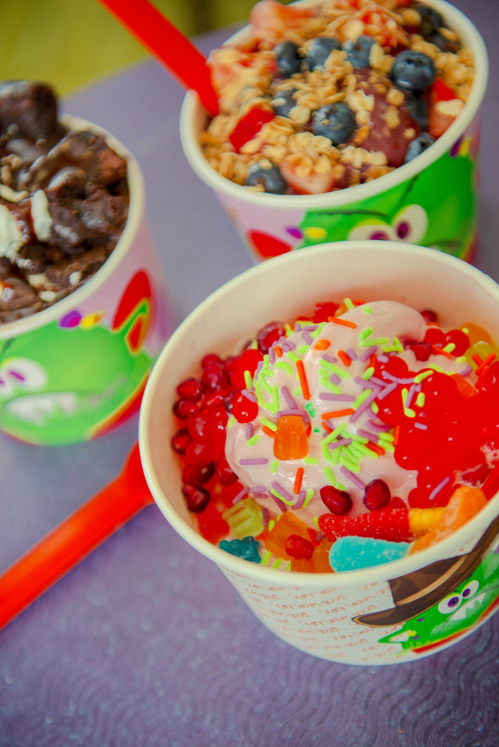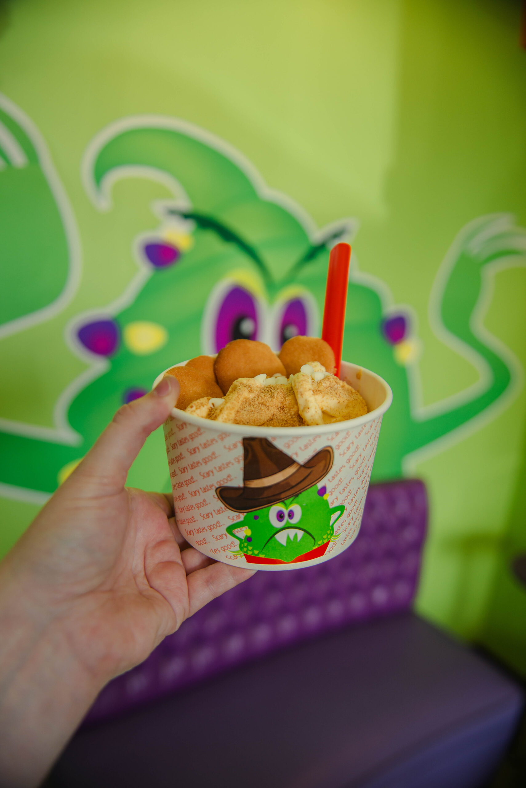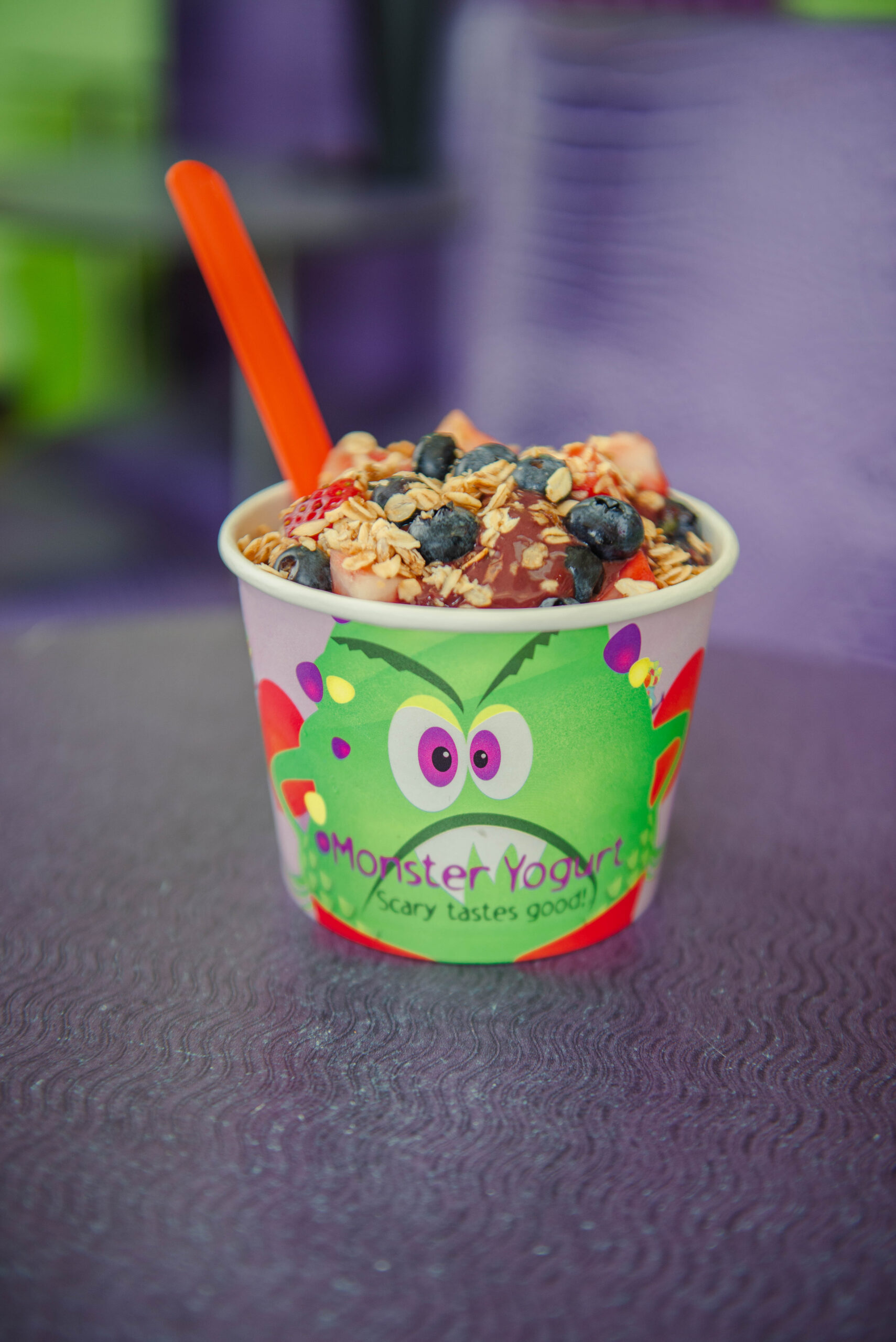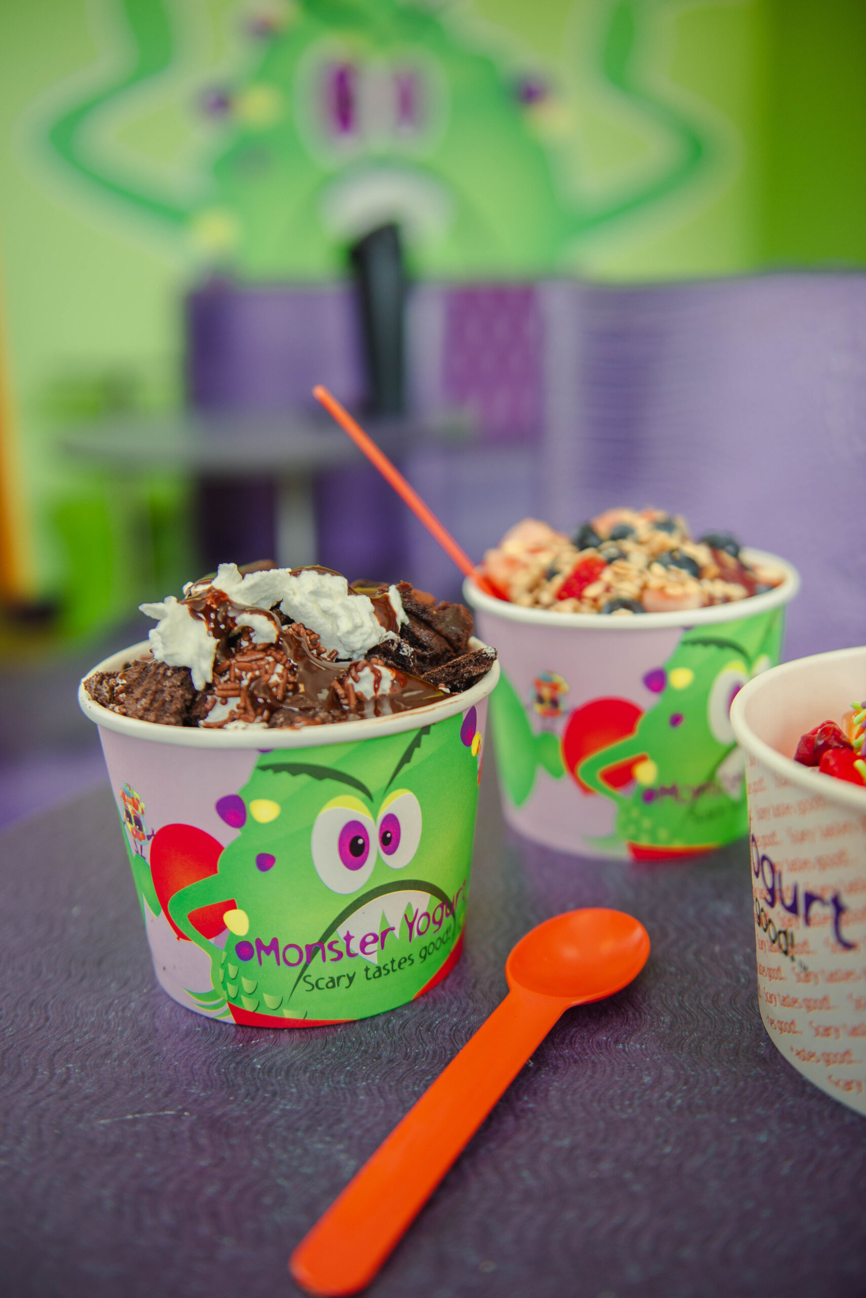 The monster motif started with the slogan “scary tastes good.” Skipworth brainstormed concepts with her friends and family, and she remembered one of them calling her in the middle of the night to go with the Monster Yogurt idea.