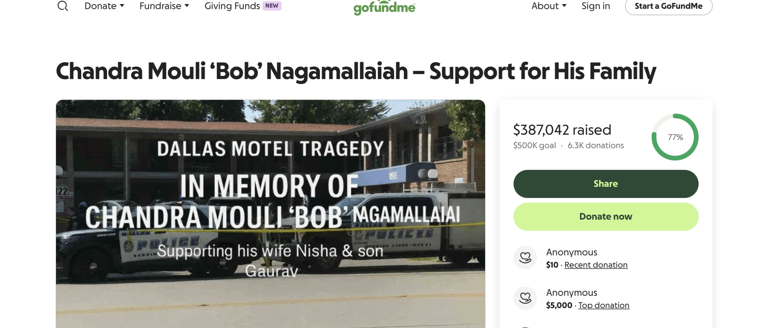 Nagamallaiah’s friends and family, who refer to him as Chandra Mouli “Bob” Nagamallaiah, have started a GoFundMe page to raise money for funeral expenses, immediate living costs and support for Nagamallaiah’s 18-year-old son as he goes to college. As of after 4 p.m. Sept. 17, the campaign collected $387,272 of the $500,000 goal, thanks to over 6,000 donations.