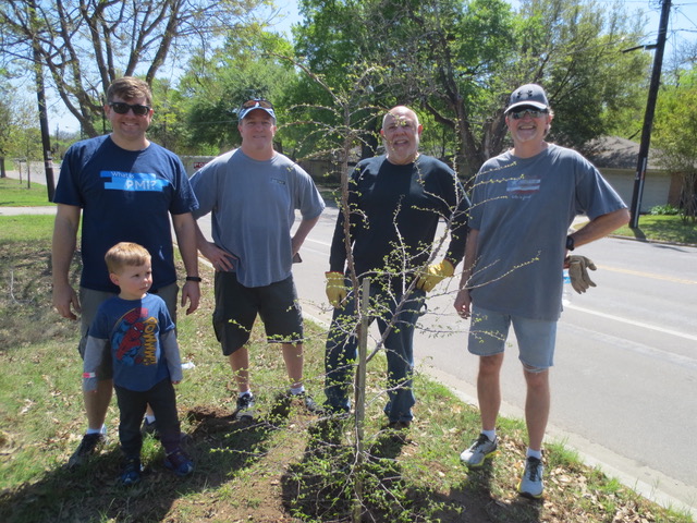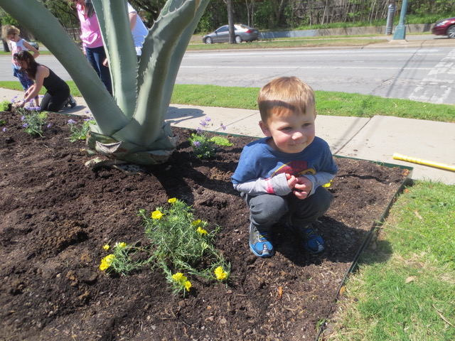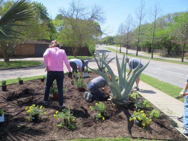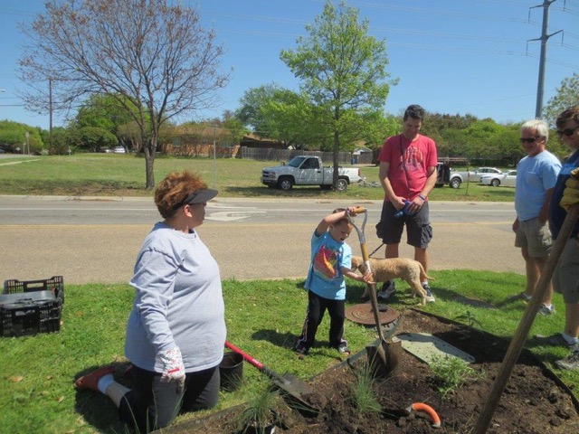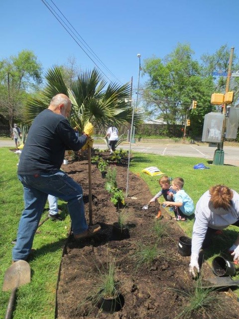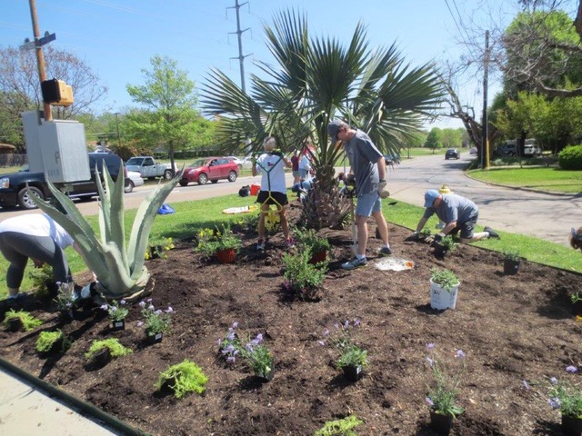 Neighbors planting the triangle garden at Mockingbird and Williamson. (Photo by Andrea Huffman)