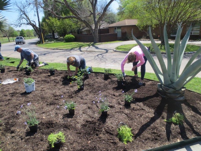 “The triangle garden is a collaboration between the Lakewood Botanical Society, Lakewood Trails Neighborhood Association and Lakewood Neighborhood Association,” says Maggie Saucedo, a Lakewood Trails resident who took part in the planting. “There are plans to install permanent signage to commemorate this collaboration.”