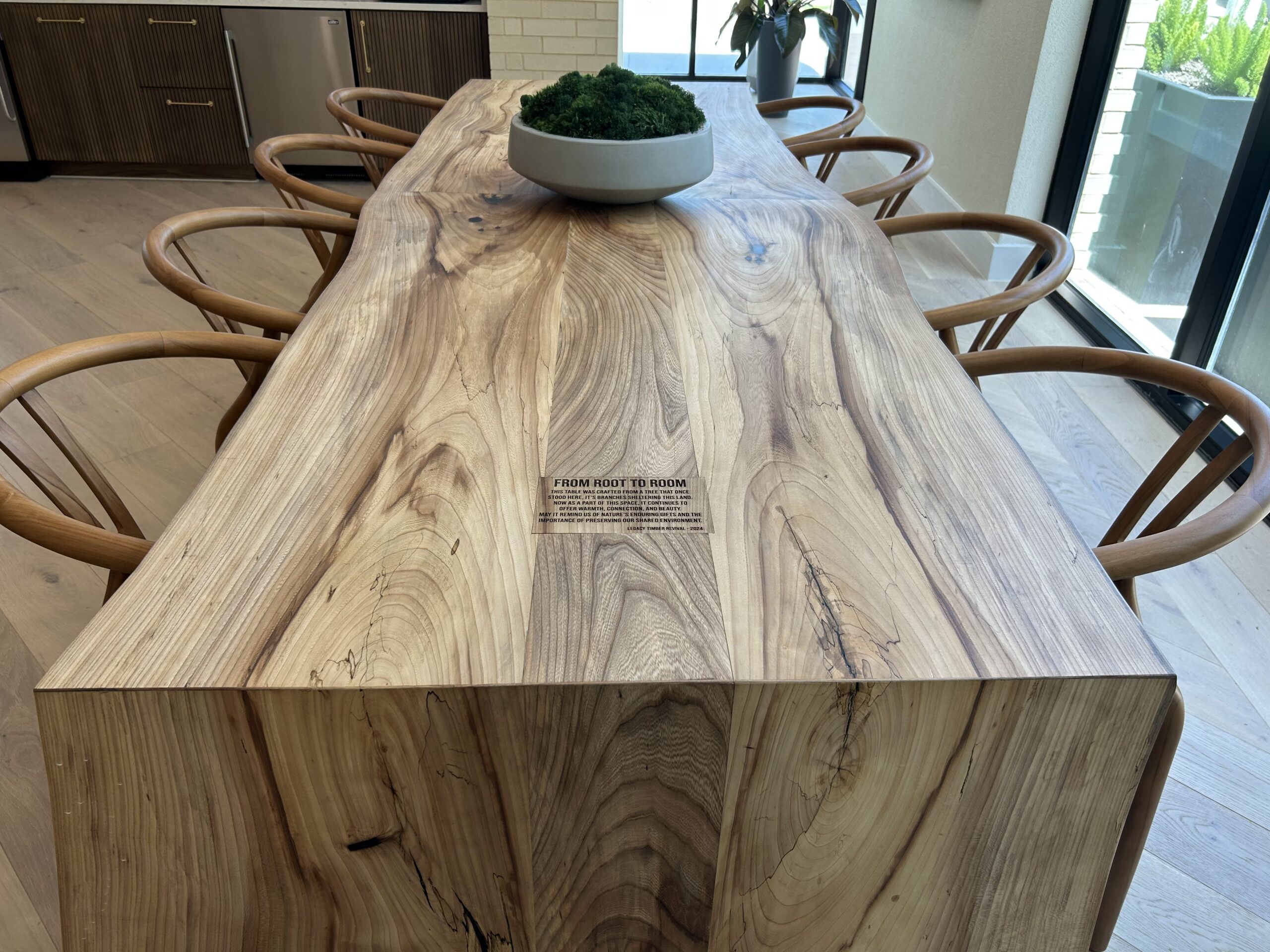 This is one of the tables made from a tree cut down on the Trailhead property. The inscription on it reads: “From root to room — This table was crafted from a tree that once stood here, its branches sheltering this land. Now as a part of this space, it continues to offer warmth, connection and beauty. May it remind us of nature’s enduring gifts and the importance of preserving our shared environment.” Photo by Madelyn Edwards.