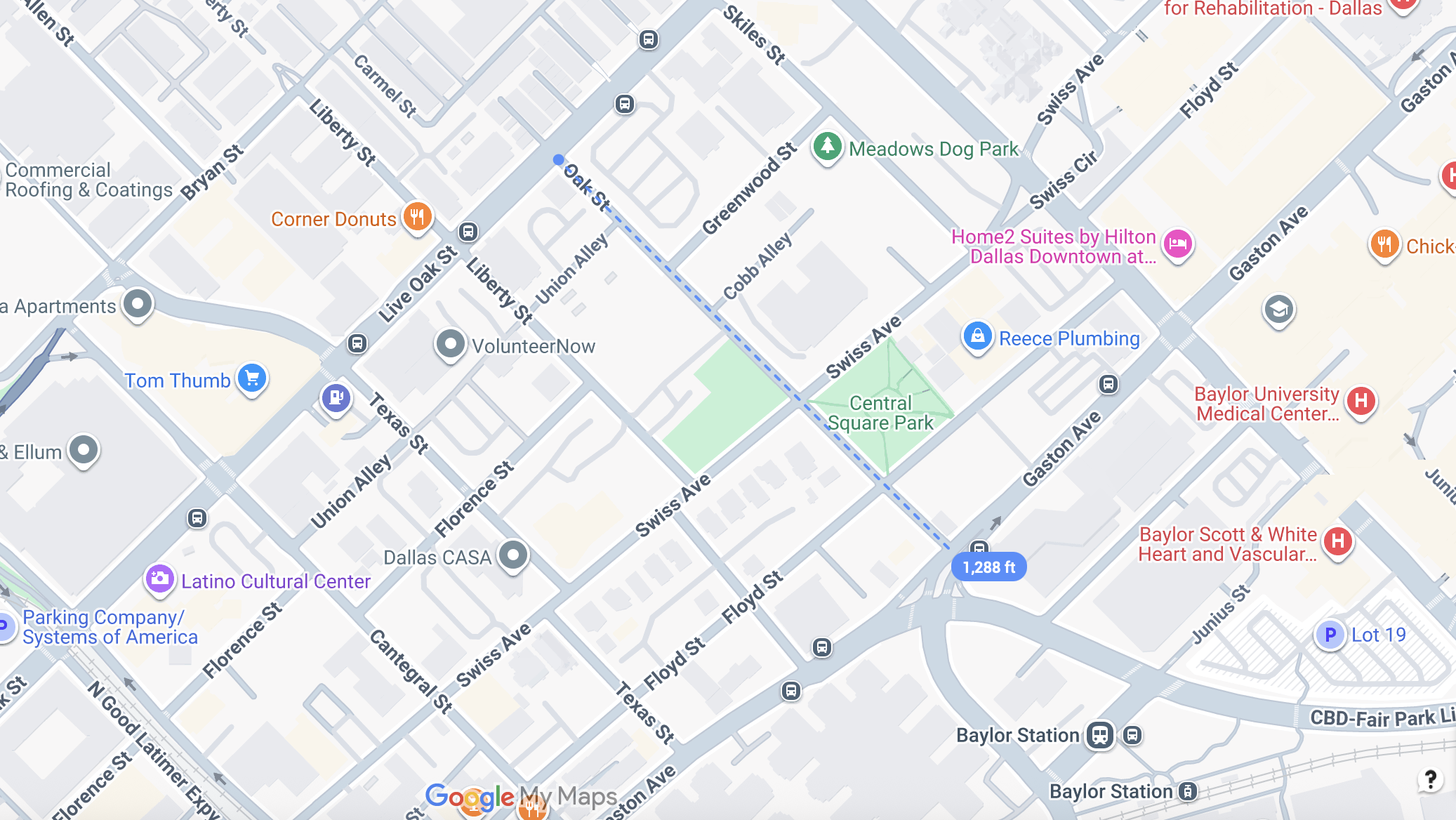 The Subdivision Review Committee recently heard a recommendation to rename Oak Street between Gaston Avenue and Live Oak Street to “Peter M. Miller Street.” Screenshot of Google My Maps.